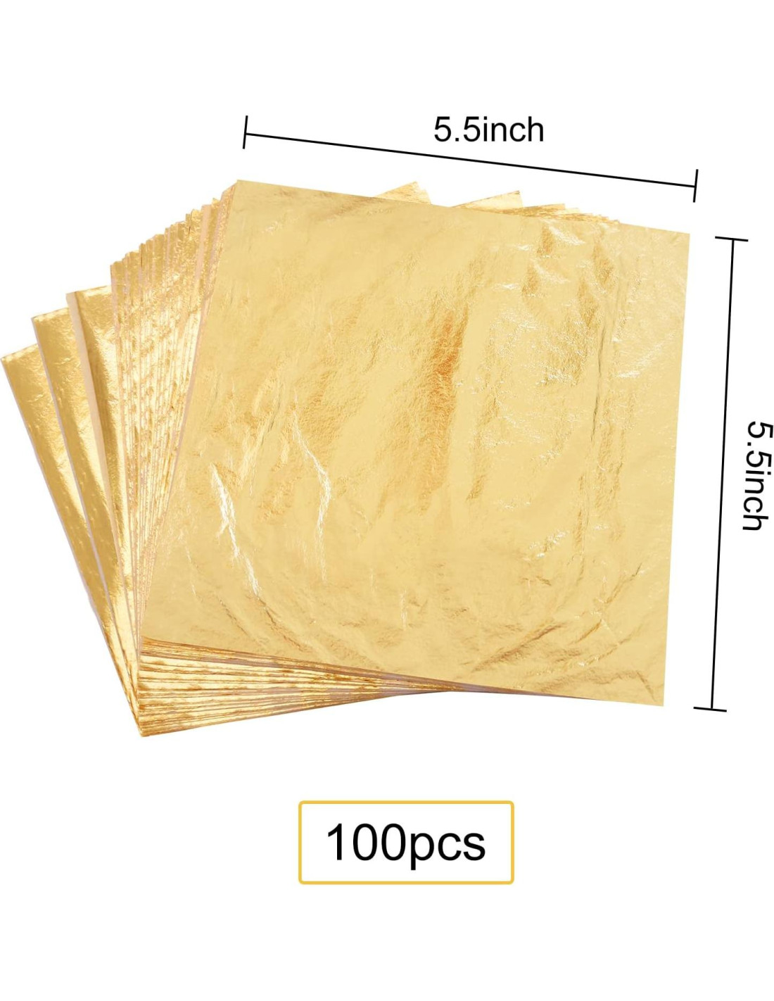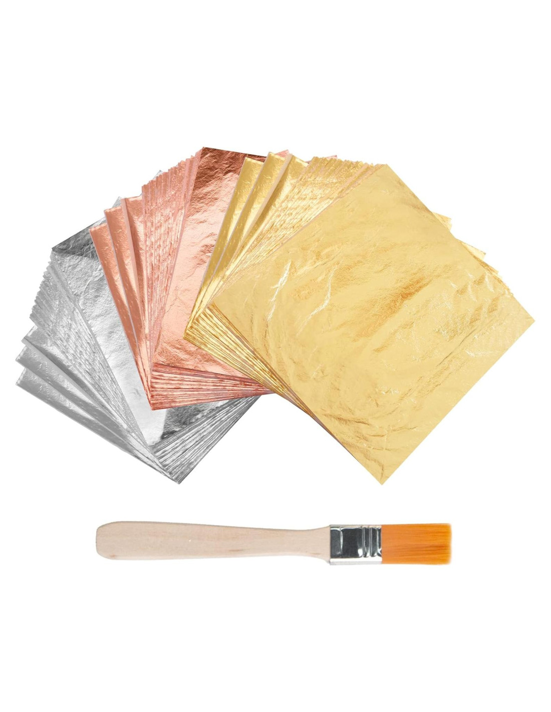 - Paquete: Estas hojas de oro de imitación están sueltas, con cada hoja intercalada entre hojas de papel tipo tissue. Para usar, levante suavemente un papel tissue y agarre la hoja debajo de él. El material de oro de imitación, cuyo componente principal es el cobre, es perfecto para restaurar muebles en hermosos tesoros dorados en casa. También se puede usar para hacer que sus manualidades sean más resplandecientes.