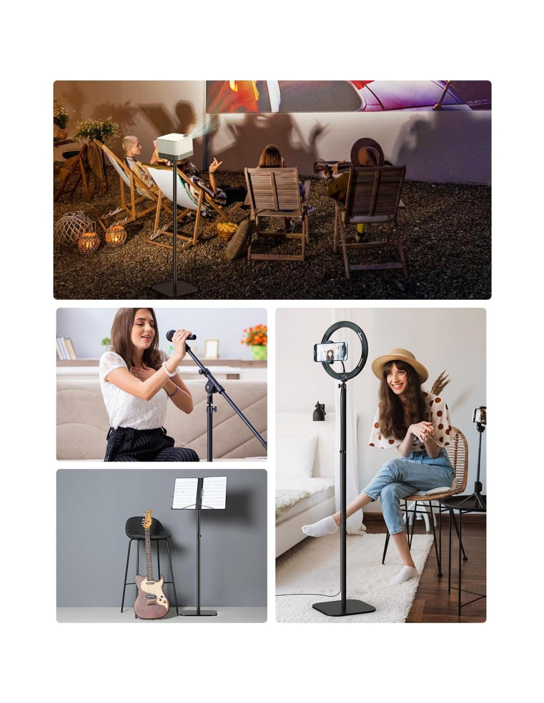 - Soporte Sólido para Múltiples Dispositivos: Tanto la pantalla como el soporte son estables. El soporte puede soportar hasta 18 lbs (8,16 kg). Ambos son adecuados para varios escenarios. El soporte se adapta a proyectores, cámaras, etc., con agujeros para tornillos de 1/4 de pulgada