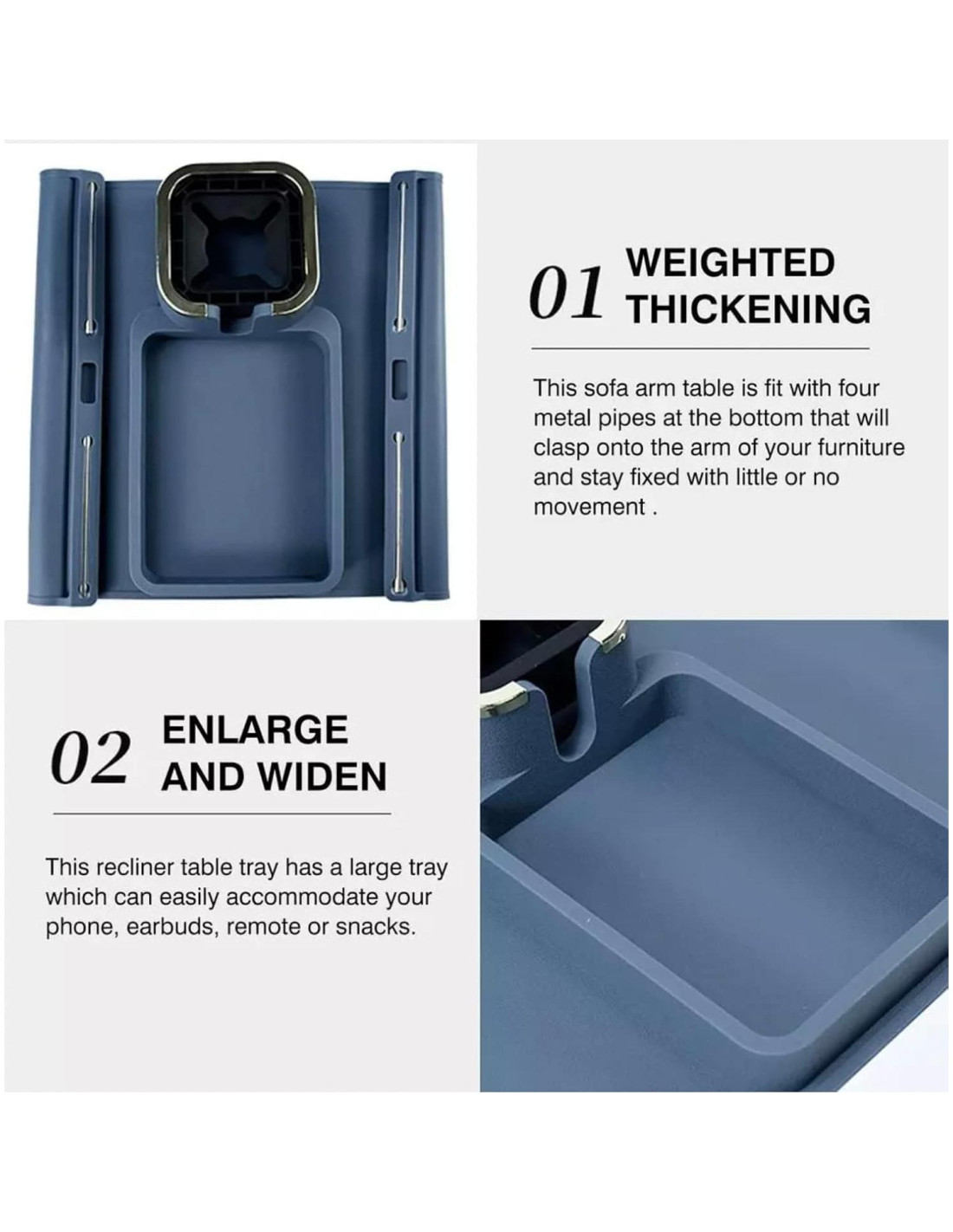- DISEÑO FUNCIONAL PERO ESTILOSO Este Mesa para el Brazo del Sofá es la Adición Perfecta a cualquier Sala de Estar, Entretenimiento o sala de TV. Hecho de silicona de alta calidad, sin olor, fácil de limpiar; La superficie es mate para un aspecto elegante y un toque cómodo; El borde inferior está equipado con dos placas de metal para aumentar el peso, de modo que el soporte para tazas pueda estar estrechamente adherido al reposabrazos del sofá, permanece en su lugar y sin marcar el cuero.