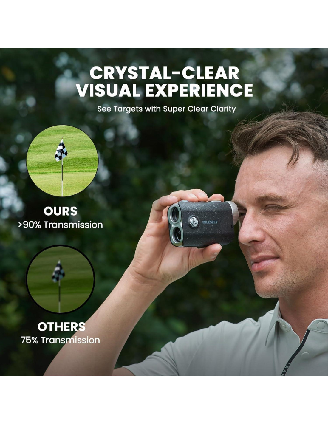 - 0.1s Rápido Bloqueo de Bandera Mileseey PF1 buscador de rango de golf con algoritmos de bloqueo de bandera de próxima generación, el buscador de rango láser PF1 probado en torneos cuenta con una velocidad de bloqueo de bandera instantáneo y precisión récord. Además, proporciona un rango de hasta 1100 yardas (más de 350 yardas a una bandera). Se garantiza la mejor precisión y una tasa de bloqueo de bandera consistente, incluso con una mano temblorosa o una bandera oscilante en el viento