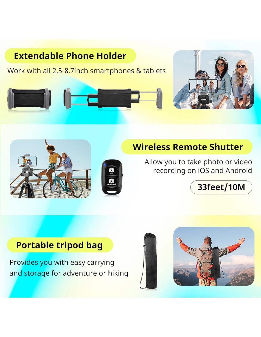 - Trípode versátil para teléfono e iPad: trípode para teléfono Sensyne de 64", otra gran innovación, rompiendo la limitación solo para una variedad de teléfonos, y ahora sostiene iPad o tableta de forma segura mediante el clip extensible. Ligero pero resistente, viene con una bolsa de cordón negra para almacenamiento/transporte. Esencial para tu viaje