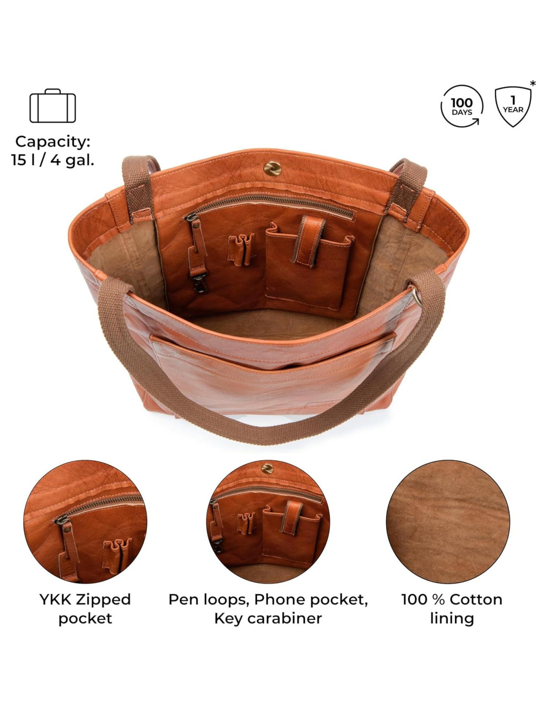 - DISEÑADO EN BERLÍN, ALEMANIA. El versátil bolso Sevilla está cuidadosamente diseñado en Europa y fabricado con materiales de alta calidad y duraderos, ofreciendo tanto un uso prolongado como un estilo atemporal. El espacioso compartimento principal forrado con algodón incluye un bolsillo para teléfono, lazos para bolígrafos, un bolsillo interior con cremallera YKK y un mosquetón para llaves para mantenerte organizada en movimiento.