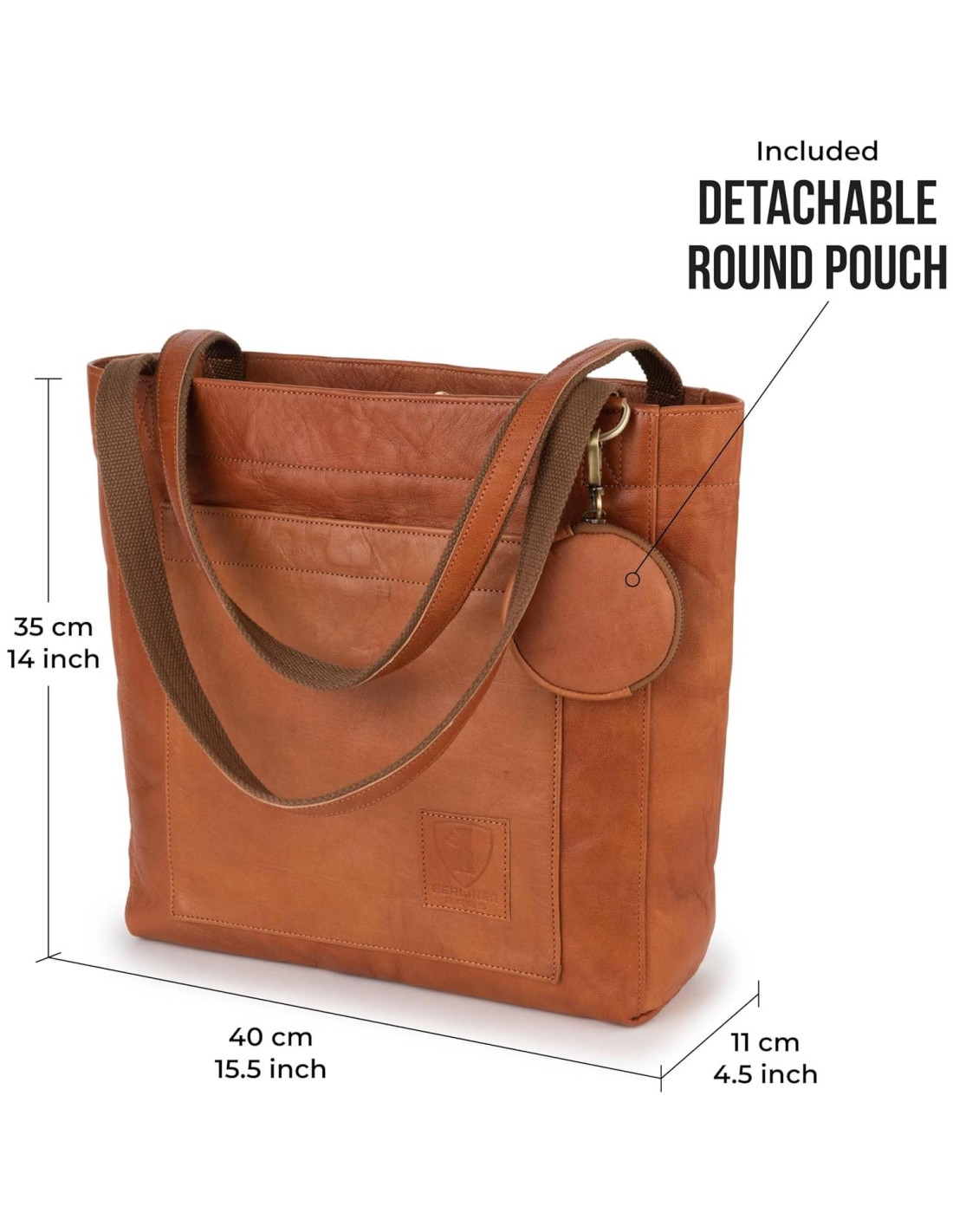 - TU BOLSO PARA SIEMPRE. Sevilla es un tote para mujeres elegante y espacioso, perfecto para el uso diario. Su diseño vintage combina sin esfuerzo con cualquier atuendo. Con asas de cuero reforzadas, cierre magnético, pouch redondo desmontable y bolsillo exterior, combina estilo y comodidad. Dimensiones: 14 pulgadas (35,56 cm) x 15.5 pulgadas (39,37 cm) x 4.5 pulgadas (11,43 cm).