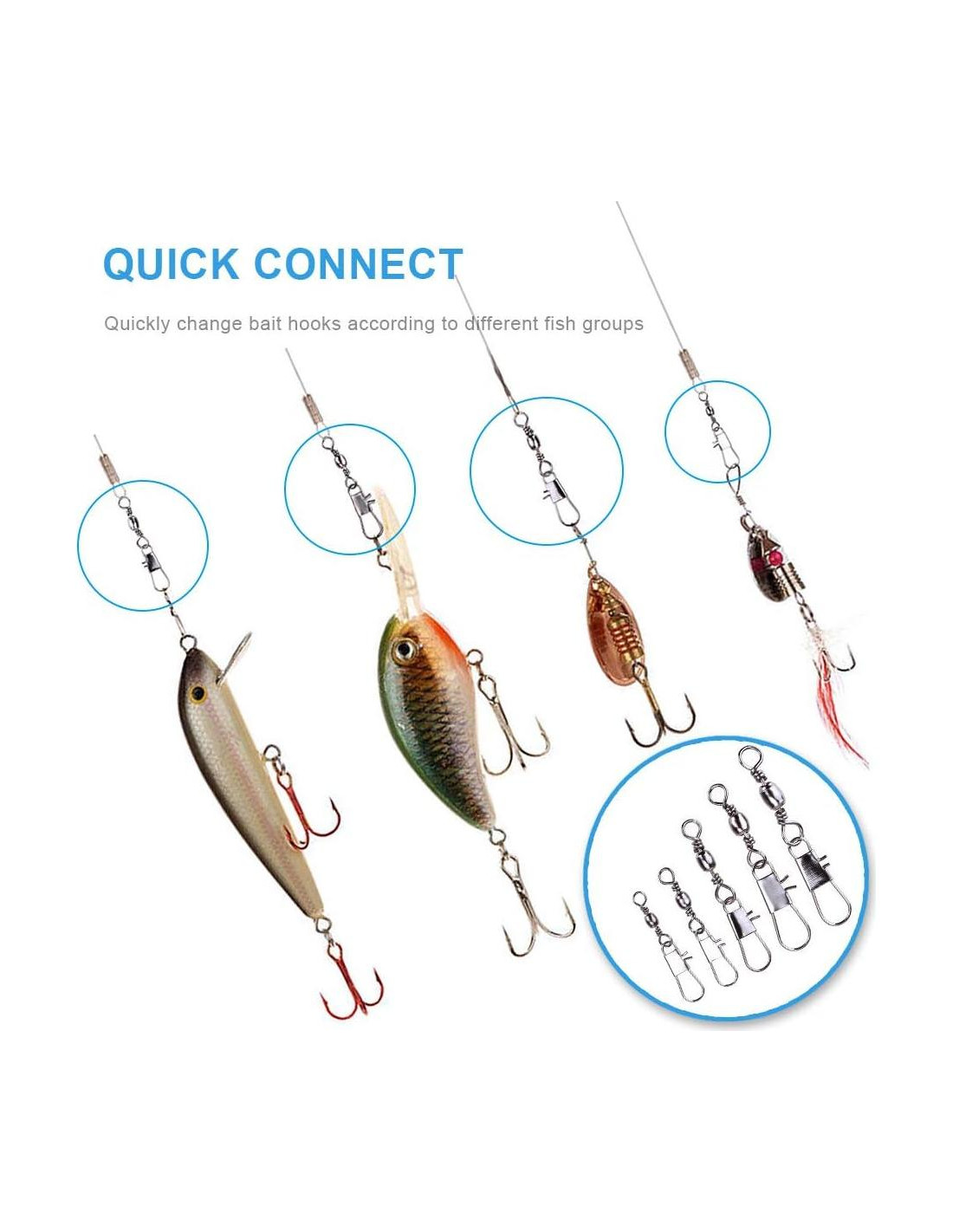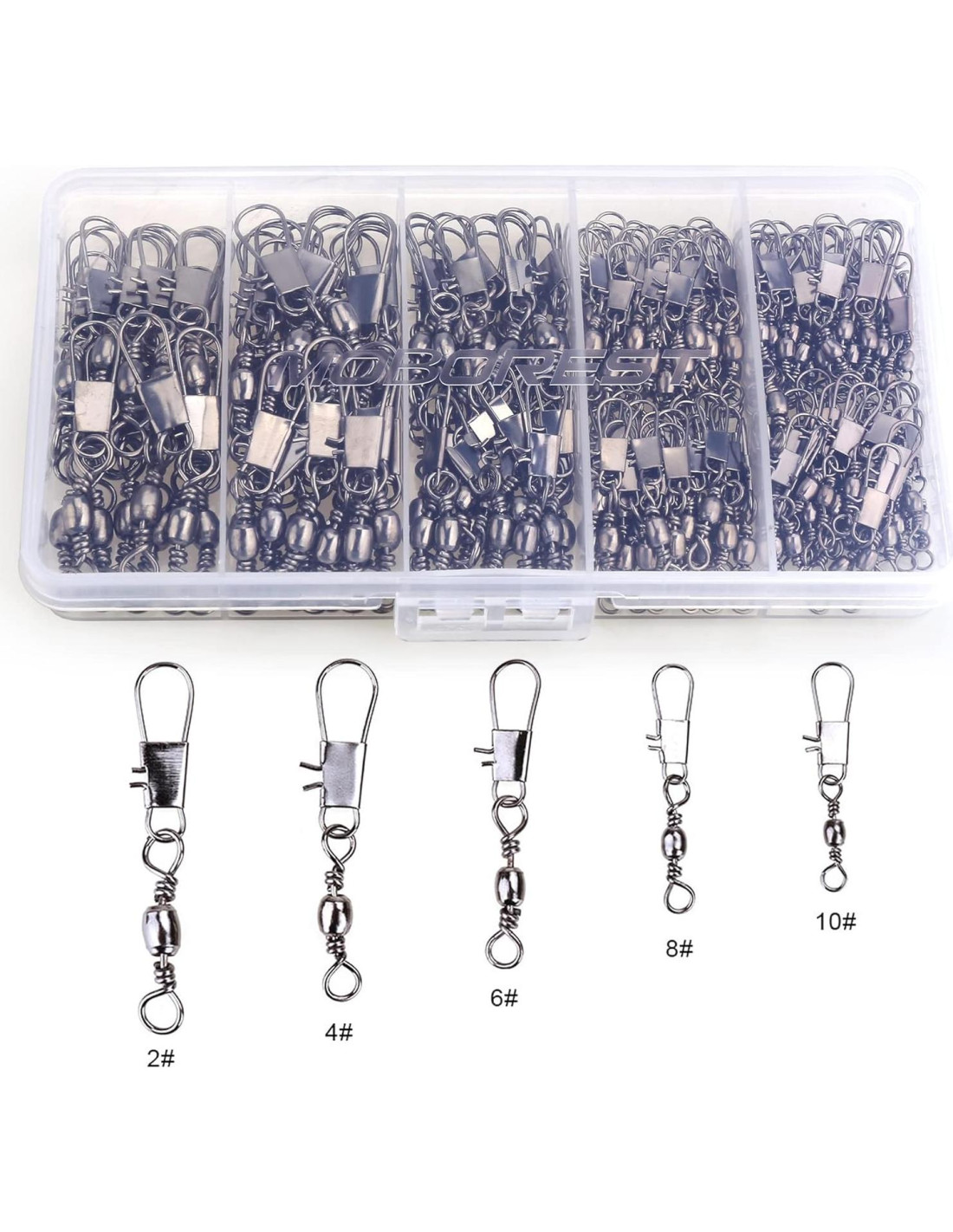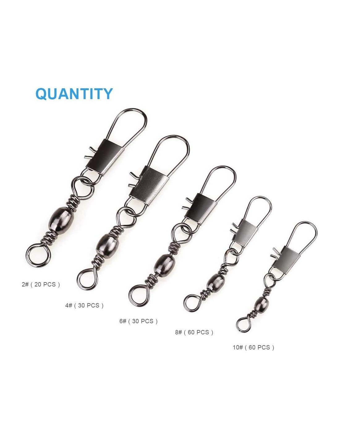 - 5. PAQUETE: Un total de 200 conectores giratorios de pesca en una caja de plástico reutilizable, incluidos #2 (20PCS) #4 (30PCS) #6 (30PCS) #8 (60PCS) #10 (60PCS), esta es una excelente colección de giratorios de barril a un excelente precio.