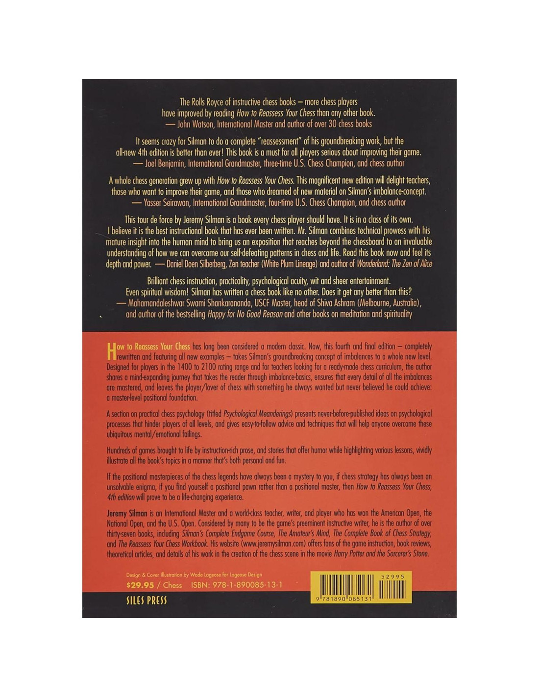 Cómo Revaluar Tu Ajedrez es el popular curso paso a paso que creará una mejora notable en el juego de cualquiera. En un lenguaje claro y directo, Silman muestra cómo descomponer una posición, reconocer sus partes individuales y, en última instancia, encontrar el movimiento que se ajusta a las necesidades de esa situación particular. Al explicar los procesos de pensamiento que intervienen en la elección de movimiento de un maestro, el autor presenta un sistema de pensamiento que hace que las estrategias avanzadas parezcan claras, lógicas y a veces incluso obvias. Cómo Revaluar Tu Ajedrez ofrece conocimientos e ideas invaluables que no se pueden encontrar en ningún otro libro.