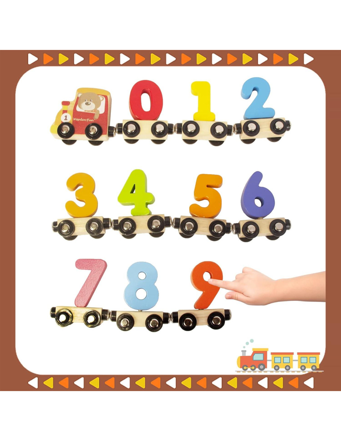 - Certificado FSC: El juguete de tren de números está hecho de madera certificada por el FSC