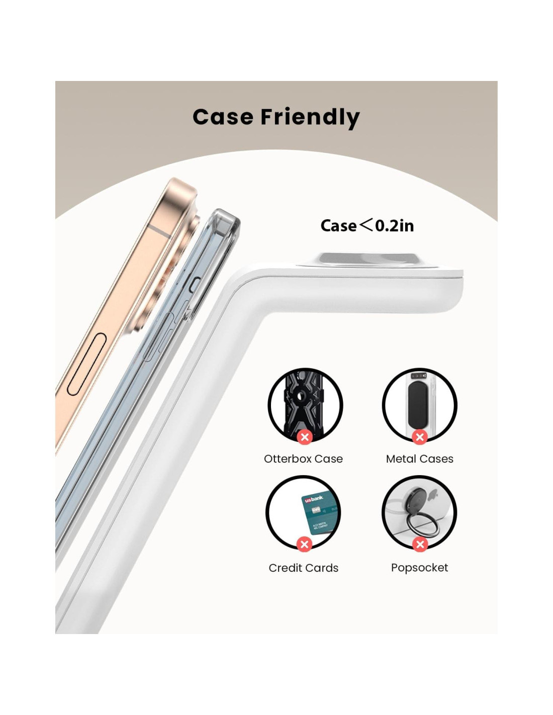 - Diseño de Placa "U", Almohadillas de Silicona Antideslizantes: El cargador inalámbrico para dispositivos Apple con diseño de placa "U" te permite tener un mejor confort de visualización como soporte para teléfono, ocupando solo un área del tamaño de un puño en tu escritorio. Aún mejor, cada área de carga y la parte inferior de nuestra estación de carga están cubiertas con almohadillas antideslizantes y antiestáticas, asegurando cero deslizamientos y protección total para tus dispositivos.
