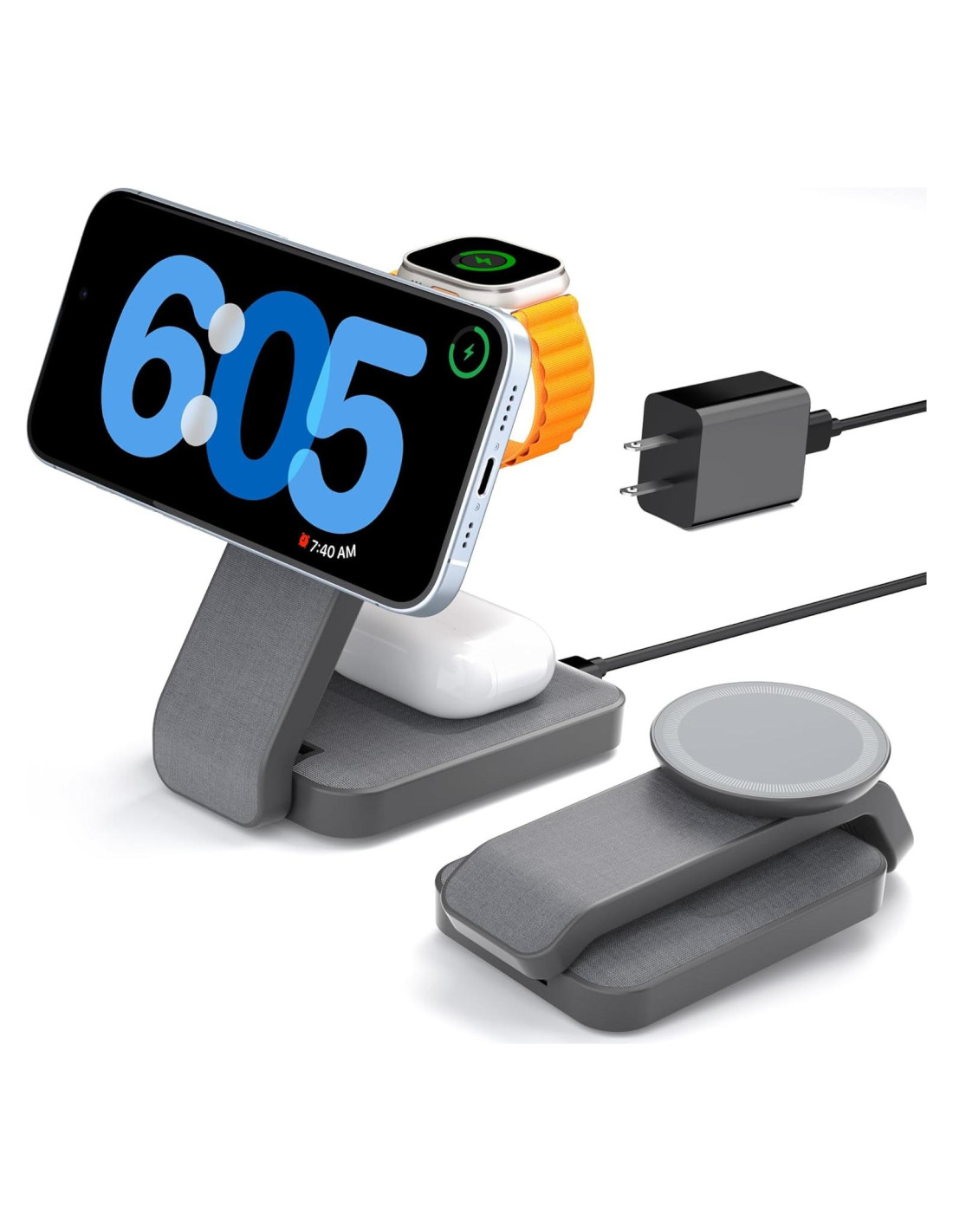 - Estación de Carga Inalámbrica 3 en 1: El cargador plegable 3 en 1 de Apple puede cargar tu iPhone, Apple Watch y AirPods simultáneamente. Di adiós a los cables enredados y a los problemas de enchufar o desenchufar. Perfecto soporte de carga inalámbrica para MagSafe para iPhone 16e/16/16 Plus/16 Pro/16 Pro Max/iPhone 15/15 Plus/15 Pro/15 Pro Max/14/13/12/SE/X/11/8 series, Samsung Galaxy S24 Ultra/S24+/S24/S23 Ultra/S23+/S23/S22 y otros teléfonos qi. Gran soporte magnético de cargador iWatch para Apple Watch Ultra 2/Ultra/10/9/8/7/6/5/4/3/2/SE, AirPods Pro 2/Pro/4/3/2 (con estuche de carga inalámbrica)