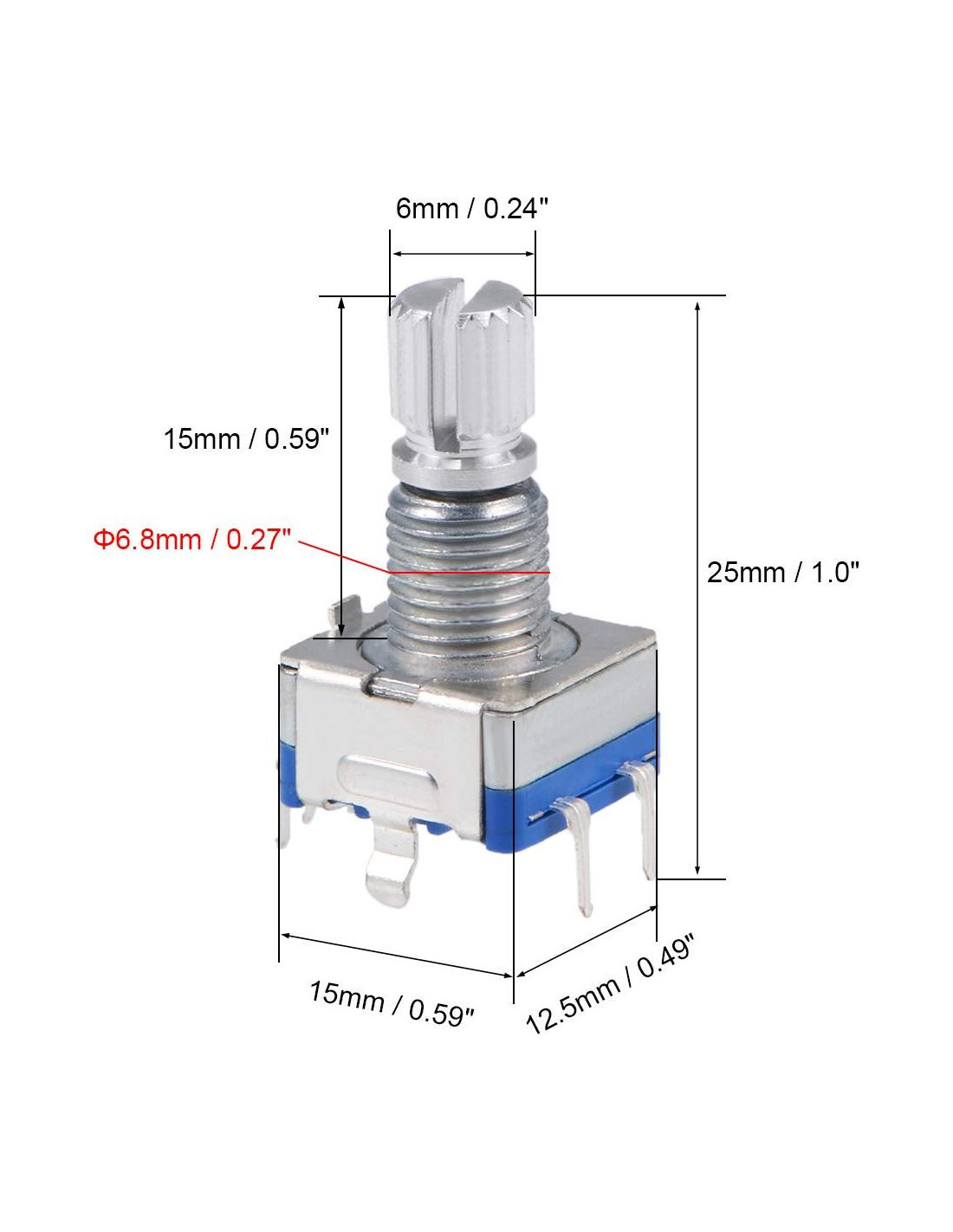 - Diámetro del eje: 6mm/0.24 pulgadas; Altura del eje: 15mm/0.59 pulgadas; Diámetro de la rosca: 6.8mm/0.27 pulgadas; Dimensión total: 15mm x 12.5mm x 25mm / 0.59 pulgadas x 0.49 pulgadas x 1.0 pulgadas (L*W*H)