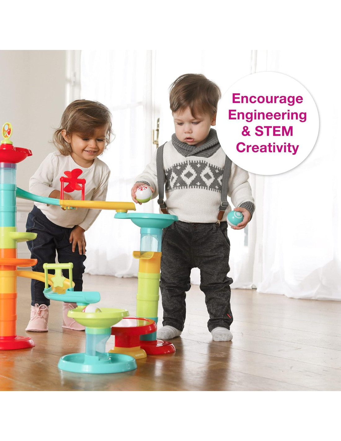 - Desarrollo visual: seguir las canicas mientras ruedan por la pista desarrolla habilidades sensoriales visuales y memoria visual