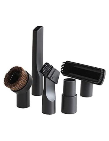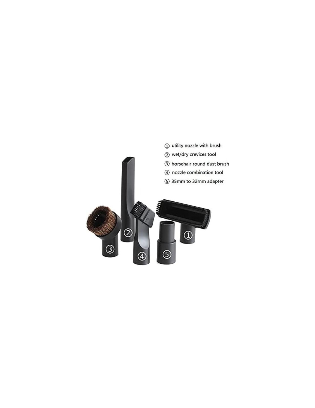 - El juego incluye: boquilla de utilidad de 32 mm con cepillo/herramienta de hendidura para aspiradora en seco o húmedo/cepillo redondo de pelo de caballo/herramienta de combinación de boquilla, adaptador de manguera de 35 mm a 32 mm