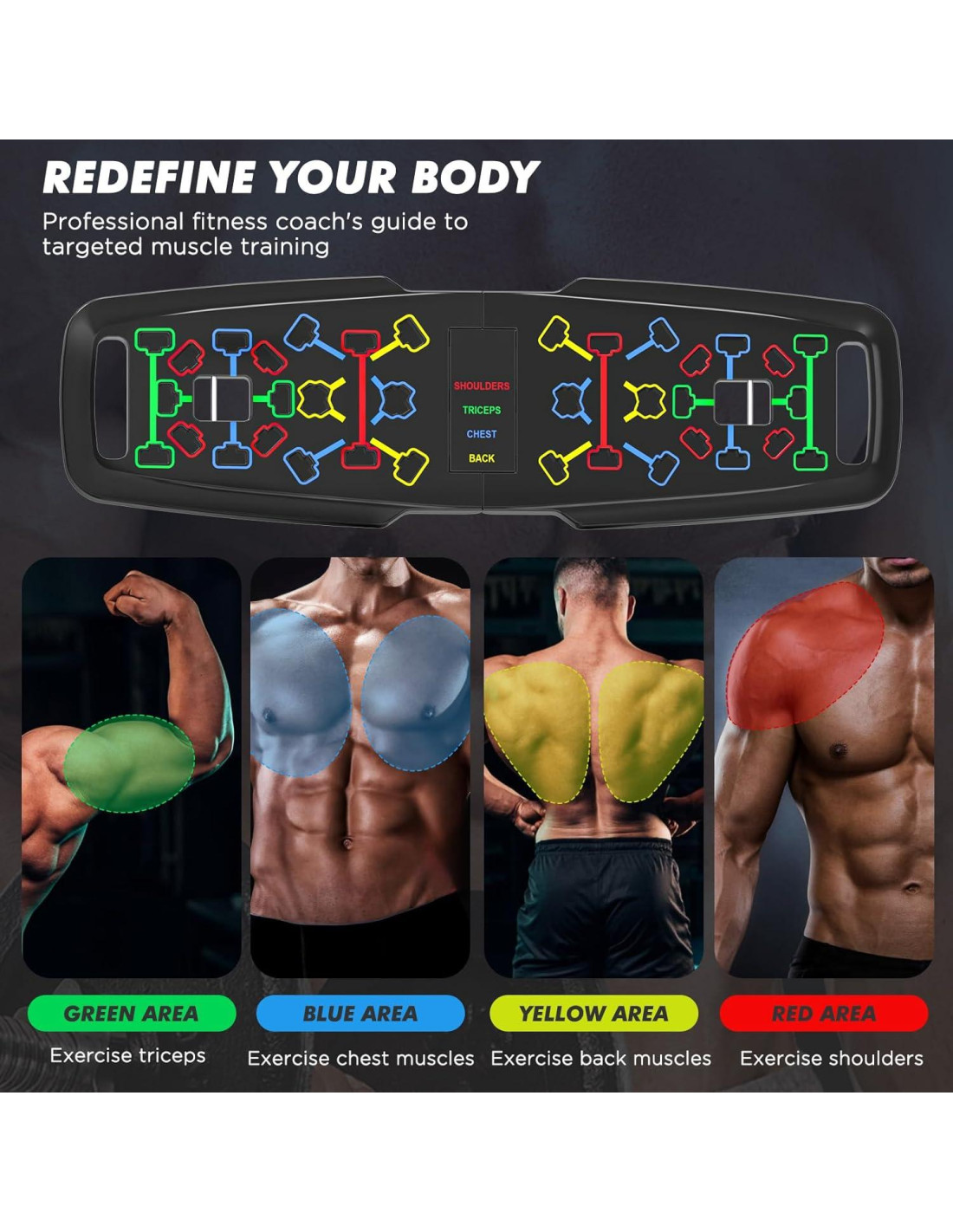- [Gimnasio en Casa Multifuncional] : Esta tabla de flexiones Muscle Max plegable está codificada por colores para proporcionar múltiples posturas de flexiones altamente efectivas. El equipo de entrenamiento KUYOU para el gimnasio en casa está diseñado específicamente para apuntar a diferentes grupos musculares (pecho, hombro, tríceps y espalda), mientras activa tu núcleo. Científicamente probado para activar un 30% a 50% más de crecimiento muscular. Se proporcionan instrucciones detalladas con orientación profesional de entrenamiento para maximizar tu entrenamiento de cuerpo completo.