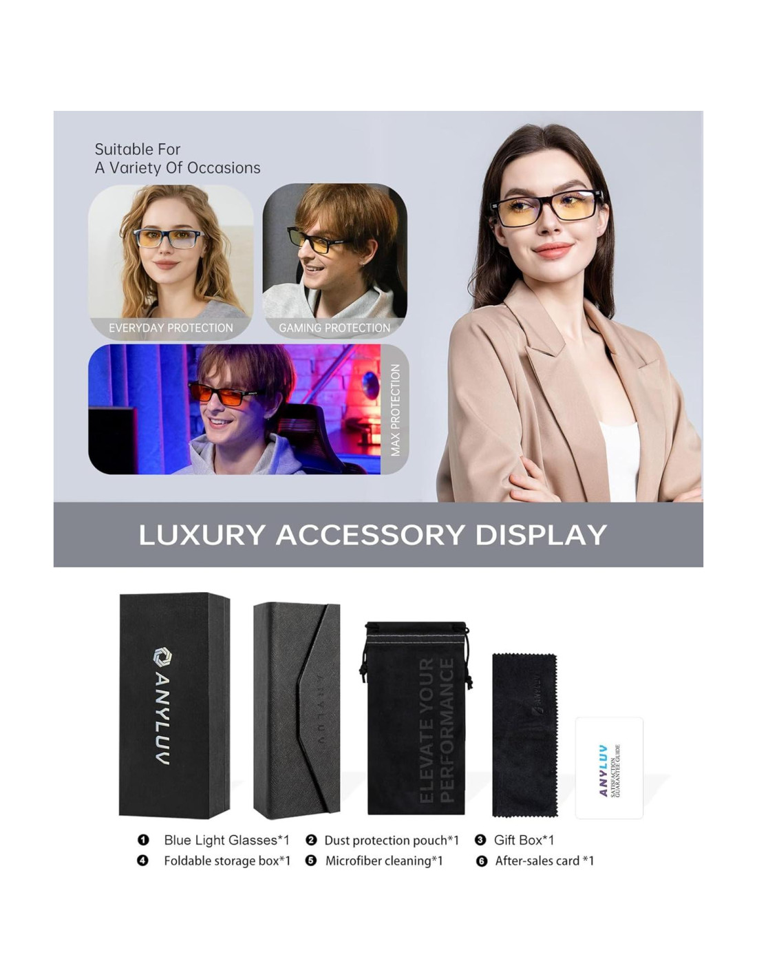 - Visión Cristalina: Las gafas de luz azul para hombres de ANYLUV cuentan con lentes de baja distorsión de color que aseguran una alteración mínima del color, ofreciendo una experiencia visual clara y vibrante sin comprometer la protección ocular, ideal para el trabajo y el ocio.