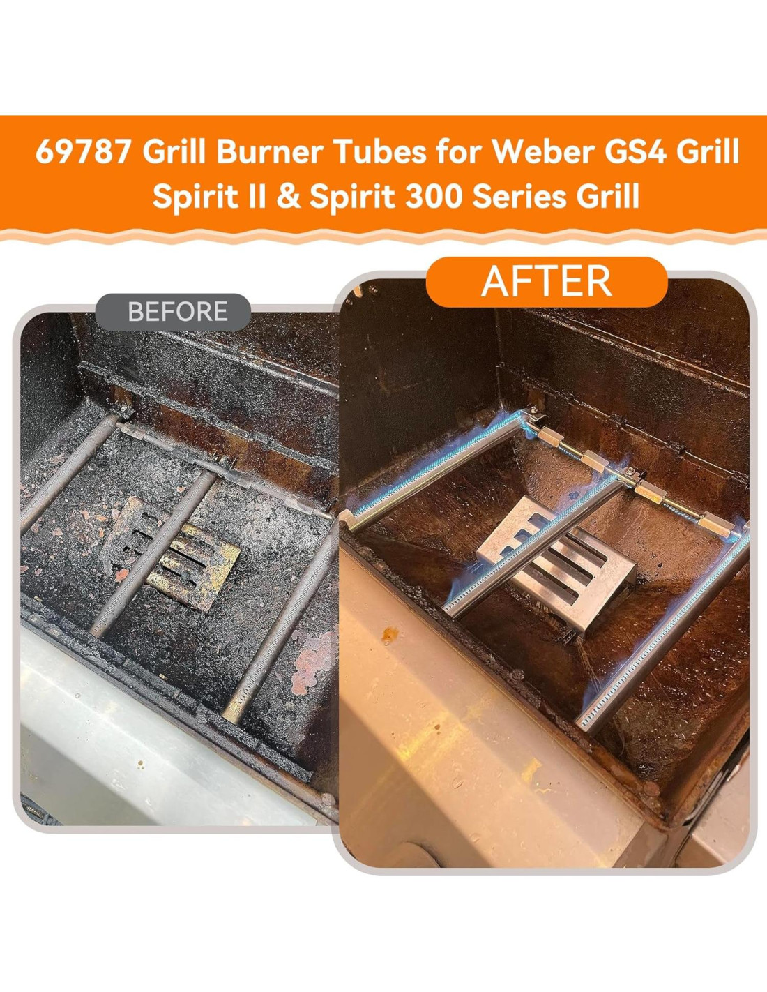 - PIEZAS DE REEMPLAZO EXACTAS: Estas piezas de parrilla son compatibles con los números de parte de la serie Spirit II 300, incluyendo Barras Flavorizer: 7636, 67046, 69797, 68843; Tubo de Quemador: 69787, 68950, 68951, 67025, 67103, 67279, 69898; y Deflector de Calor: 67060, lo que las convierte en reemplazos ideales para las parrillas Weber GS4 Spirit II 300 Series. Es una experiencia de compra integral, proporcionando todo lo que necesitas a un precio razonable para rejuvenecer tu parrilla.