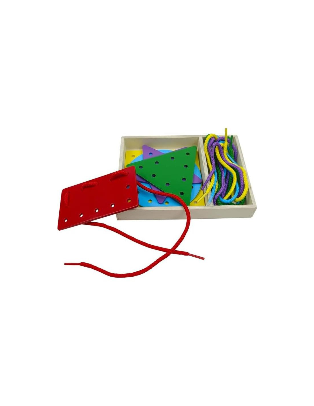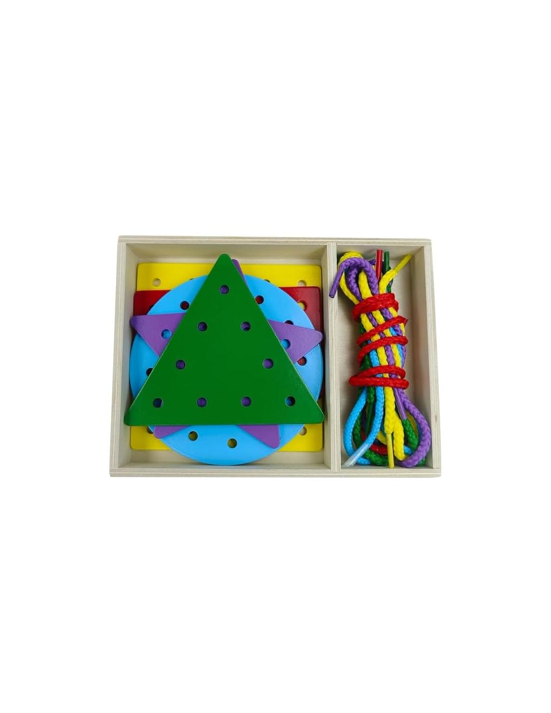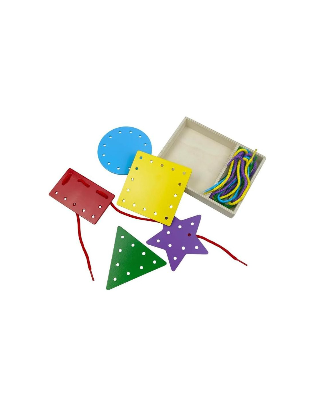 - 1 ENHEBRAR Y RASTREAR - Este conjunto de madera contiene 5 paneles de enhebrar de doble cara y 5 cuerdas coordinadas por color, es ideal para practicar habilidades motoras finas y divertido enhebrado geométrico.