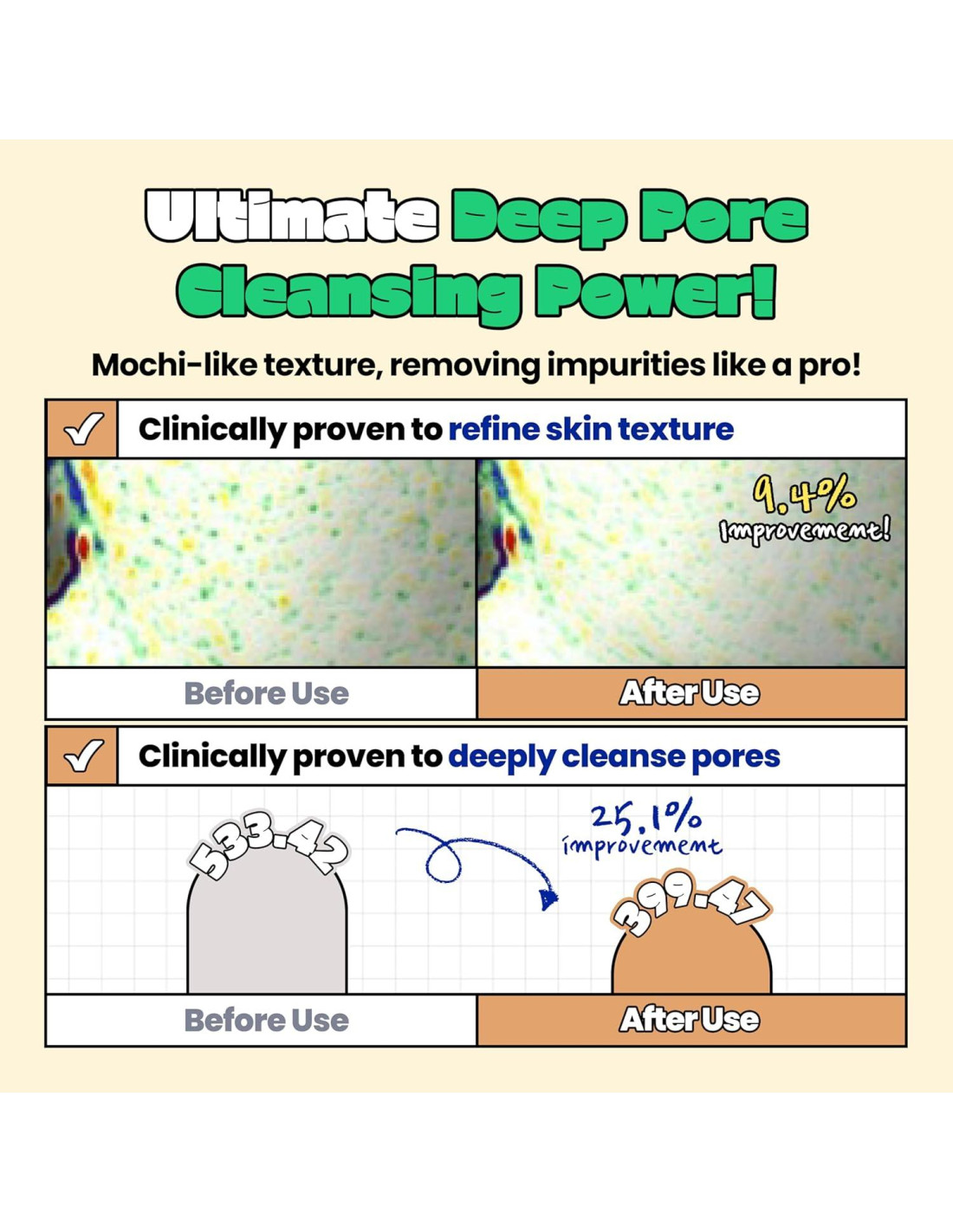 - Textura Mochi Suave y Flexible - Se siente justo como mochi fresco! Su textura elástica y acolchada se adhiere suavemente a tu piel para eliminar impurezas y ofrecer una limpieza satisfactoria y purificadora de poros.
