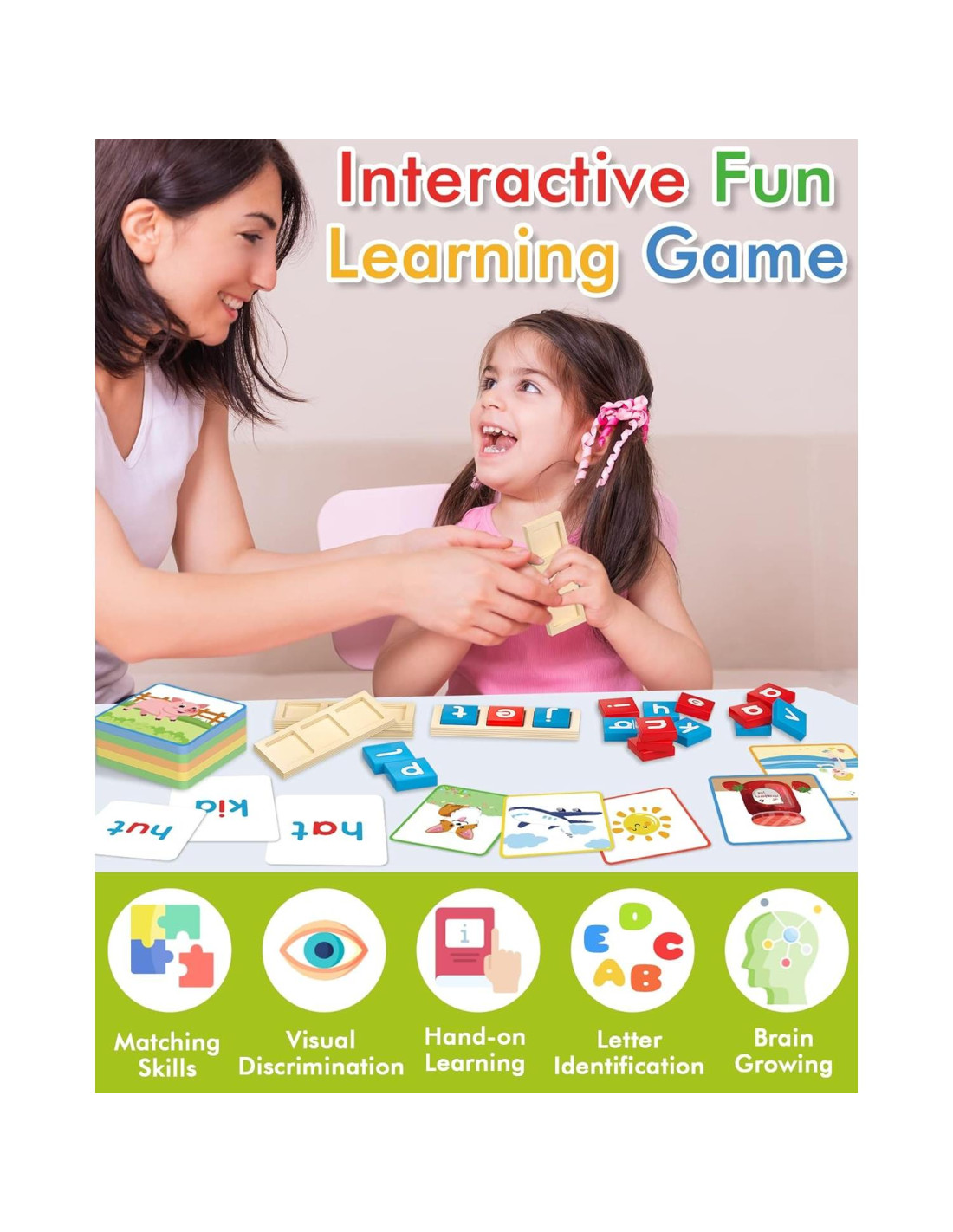 - Conjunto de Tarjetas de Palabras CVC de Madera: El paquete incluye 50 tarjetas de fonética de doble cara (un lado es la palabra y el otro es la imagen), 53 bloques de letras minúsculas de madera (12 vocales rojas y 41 consonantes azules. Las letras q, y y z no están incluidas porque las palabras de la tarjeta no utilizan estas tres letras), 5 tableros de ortografía de madera y 1 caja de almacenamiento resistente.