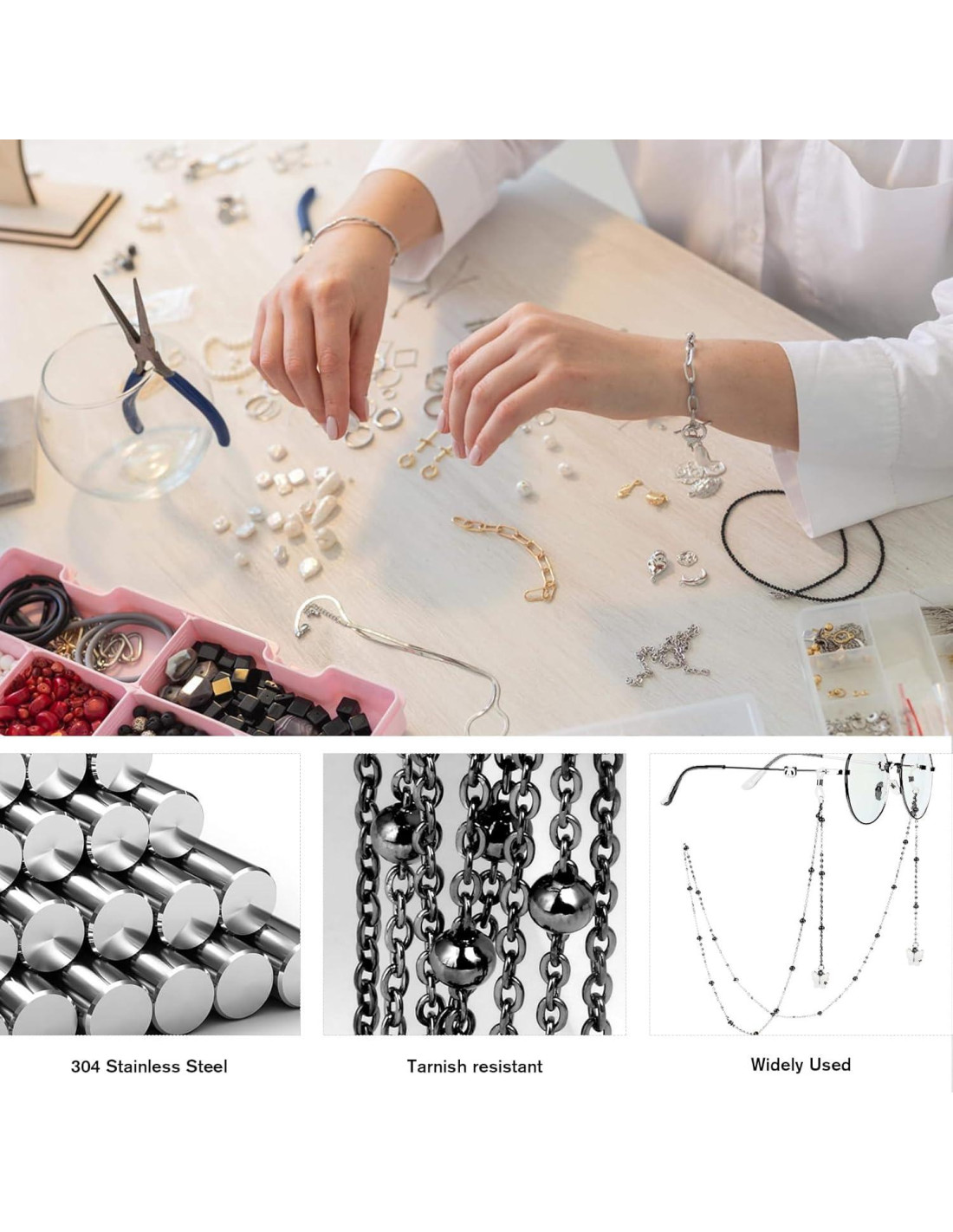- Amplia Aplicación Ideal para hacer componentes de joyería como collares, pulseras, aretes, tobilleras, cadenas en capas, cadenas extensibles, cadenas corporales, llaveros, cadenas para el vientre o más accesorios de bricolaje.