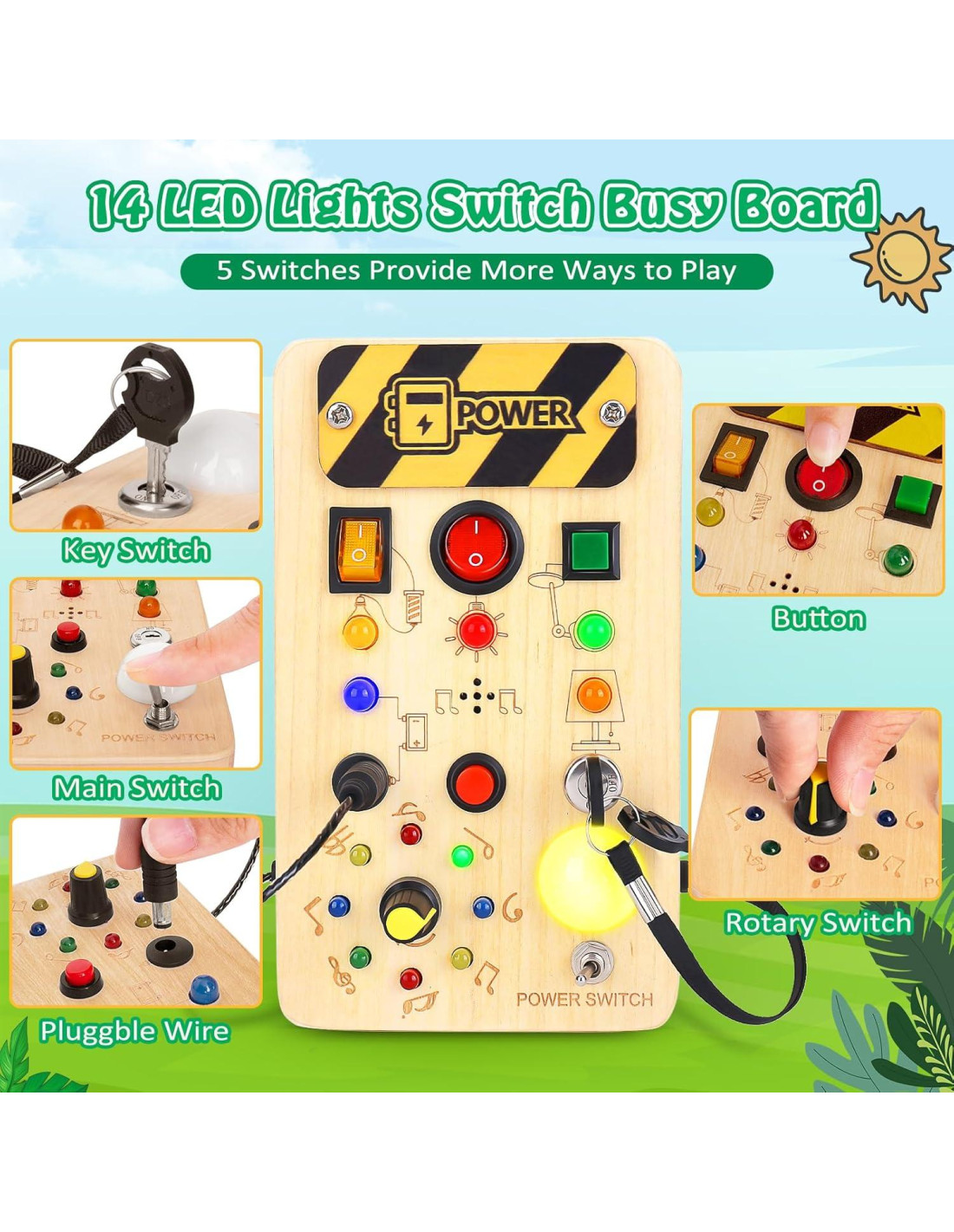 - TABLERO OCUPADO PARA NIÑOS PEQUEÑOS: El tablero ocupado LED OAKJAR tiene 8 interruptores y 14 luces LED con brillo suave y un control de interruptor maestro. La velocidad de las luces en movimiento se puede controlar y las luces redondas pueden cambiar de color automáticamente para más diversión!