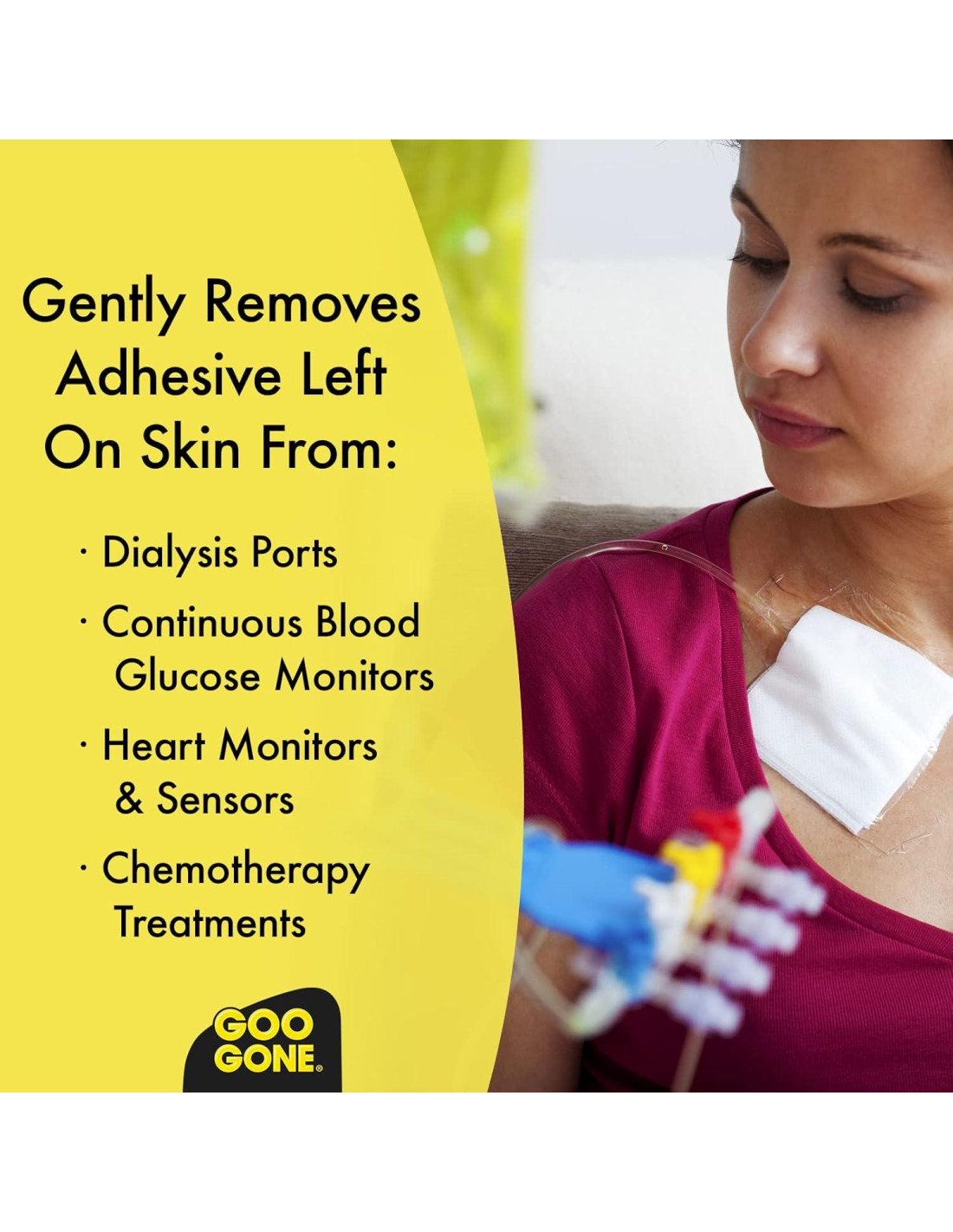 Formulado específicamente con Poder Cítrico, la cartera de productos de Goo Gone elimina sin esfuerzo problemas pegajosos, gomosos y viscosos y limpia manchas y desordenes pegajosos en toda tu casa. Desde chicles hasta grasa, tela hasta fibra de vidrio, puedes contar con Goo Gone para eliminar de forma segura casi cualquier problema y restaurar tus superficies a su condición original. Usar Goo Gone Removedor de Vendajes y Adhesivos es una forma fácil y sin dolor de quitar adhesivos extra fuertes. Ideal para cuidadores y personas con necesidades continuas de vendajes, apósitos y monitoreo. Es suave con la piel sensible y delicada. Esto es especialmente útil para aquellos que están usando: Puertos de Diálisis, Monitores Continuos de Glucosa en Sangre, Monitoreo del Corazón, Quimioterapia y otros tratamientos de infusión, Bolsas de Colostomía.