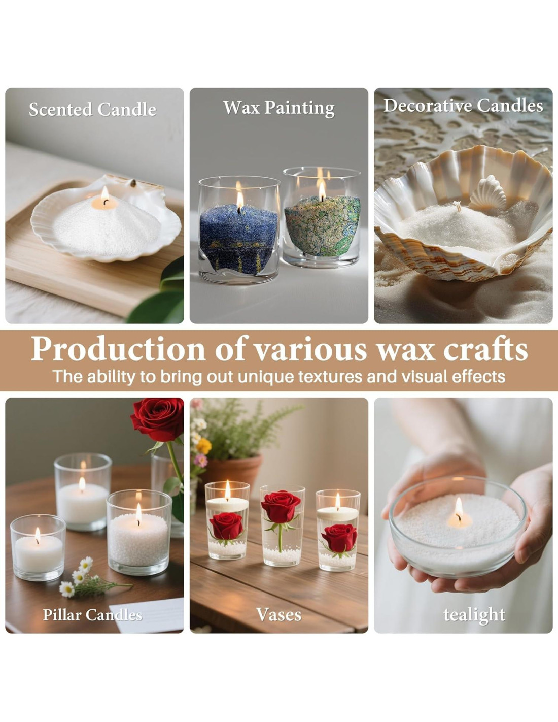 - Usos Decorativos Versátiles: Esta vela de cera de arena es perfecta para la decoración del hogar, bodas, cumpleaños, ambiente de lujo. Transforma los lugares al instante: exhibiciones festivas, eventos, demostraciones en el aula. Esta cera de arena funciona en cualquier recipiente seguro para el calor. La cera de arena para velas puede ser reutilizable con impacto en múltiples escenas