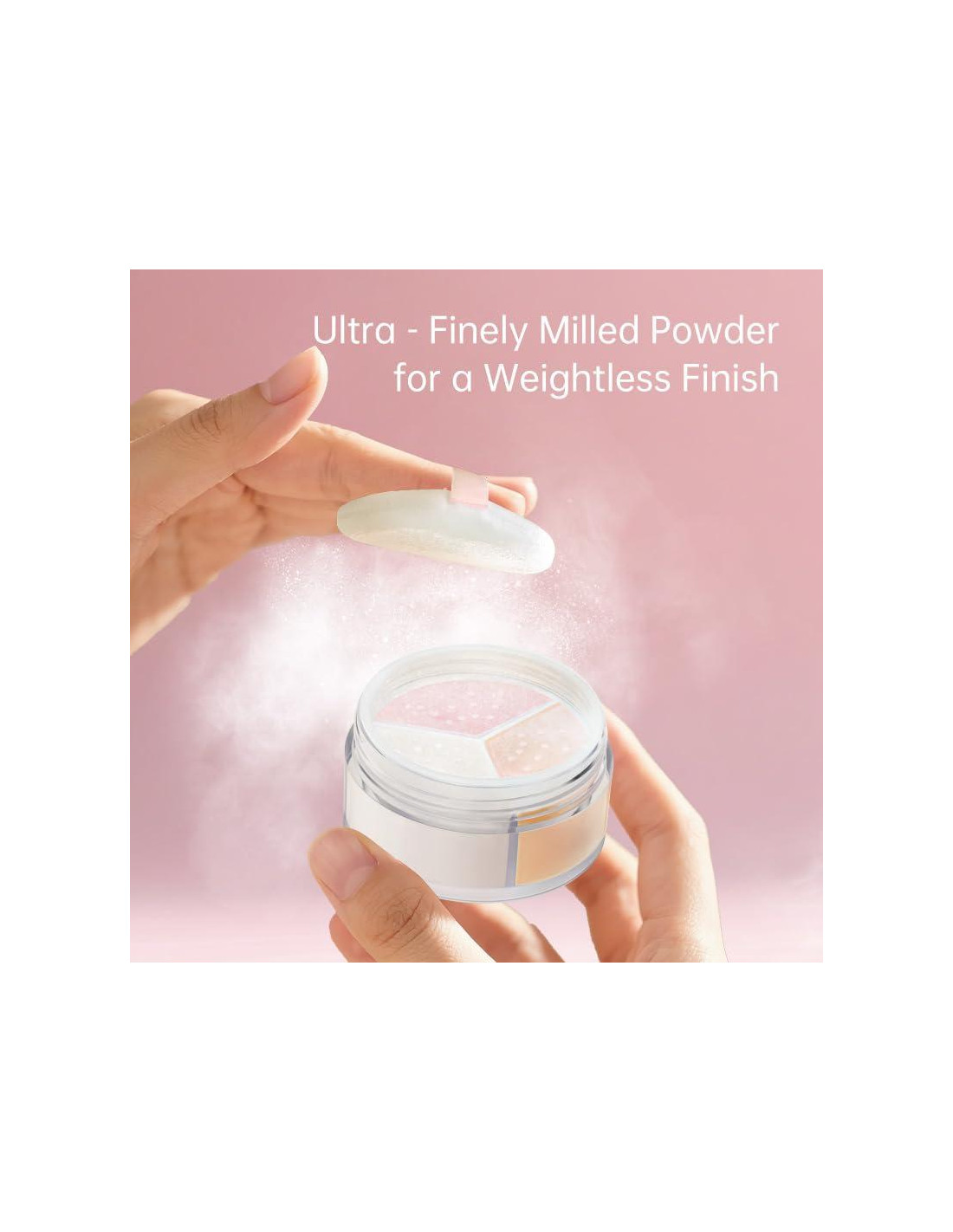 Polvo de 3 colores para tonificar la piel y crear un maquillaje de base saludable y sin imperfecciones. Polvo ligero que mantiene tu maquillaje duradero por 12 horas. Es conveniente retocar el maquillaje y absorber el aceite para mantener tu maquillaje limpio con el puff de alta calidad. Factor hidratante especialmente añadido a la fórmula, adecuado para todo tipo de piel, incluso piel seca. Creando un polvo fino, similar al humo, con tecnología patentada, es perfecto para absorber el aceite, fijar tu maquillaje o usarlo solo para un acabado mate difuminado.