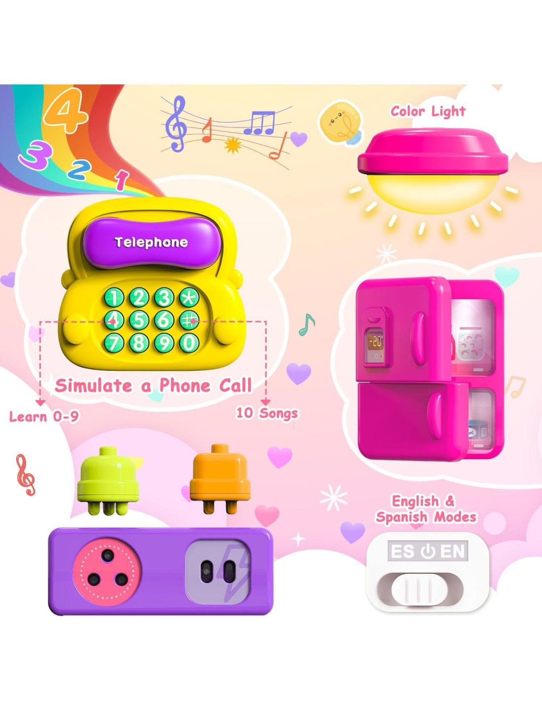 - Juguete Educativo Montessori 54 en 1 para Bebés: Nuestro tablero ocupado Montessori para niños pequeños se centra en habilidades al aire libre, uso de electrodomésticos y habilidades de vida. Presenta más de actividades, incluyendo 10 canciones, números del 0 al 9, luces de tráfico intermitentes y dos niveles de brillo. Está diseñado para ayudar a los niños a explorar objetos cotidianos mientras desarrollan sus habilidades motoras finas de una manera divertida y atractiva.