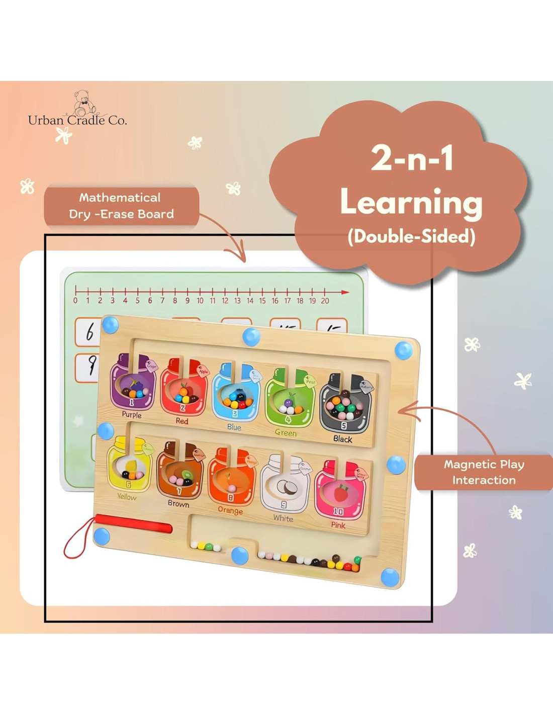 Introduce a los jóvenes aprendices a un mundo de descubrimiento con el Tablero Magnético de Madera Montessori Educativo 2-en-1 de URBAN CRADLE CO., un juguete versátil diseñado para hacer que el aprendizaje sea divertido y atractivo. Con un tema único de tarros de dulces, este tablero combina la emoción de un laberinto magnético de coincidencia de colores con una pizarra de aprendizaje de números de doble cara, convirtiéndolo en un regalo cautivador para niños de 3 años en adelante. En un lado, los niños pueden explorar el reconocimiento de colores y la finalización de patrones con un vibrante laberinto magnético que mejora las habilidades motoras finas y la conciencia espacial. Al darle la vuelta, el otro lado revela una pizarra de aprendizaje de números, perfecta para actividades matemáticas tempranas como contar, identificación de números y aritmética simple. Inspirado en los principios Montessori, este tablero fomenta el aprendizaje práctico, ayudando a los niños a construir habilidades cognitivas y de resolución de problemas fundamentales. Ideal para uso en casa o en el aula, incluye un bolígrafo magnético y un marcador de pizarra, ofreciendo infinitas posibilidades educativas en un diseño compacto.