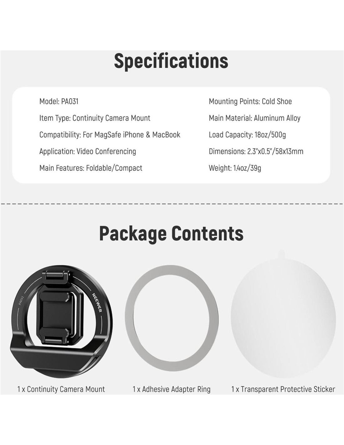 - [Zapata Fría para Expansión de Funciones] Una zapata fría puede asegurar un pequeño accesorio de hasta 18 oz (500 g), como el micrófono NEEWER CM14 Pro o la luz de video LED PL81, para llamadas de Zoom, cursos en línea, transmisión en vivo y videoconferencias. También funciona como un soporte de teléfono de escritorio para ver videos