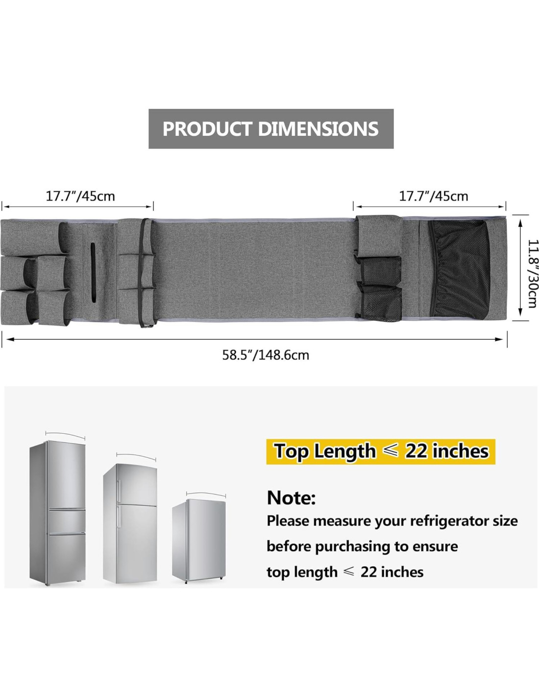 - BOLSILLO MULTIUSO - El organizador de nevera se adjunta con 10 bolsillos de diferentes tamaños y 3 bolsillos de malla para cubiertos, platos, tenedores, especias, servilletas, vasos de plástico, etc. 1 compartimento grande con una abertura en el medio para sostener rollos de bolsas de sellado al vacío o bolsas de basura. La tira colgante está diseñada para rollos de film plástico, toallas de cocina u otras cosas.