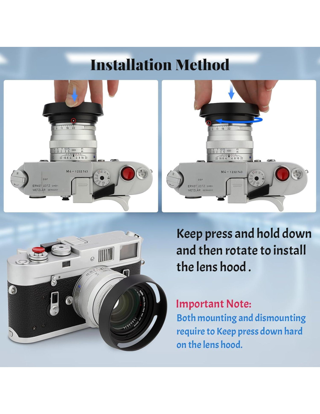 - Compatible con Lente: Voigtlander NOKTON CLASSIC 35mm f1.4 VM Lente (montura M de leica)