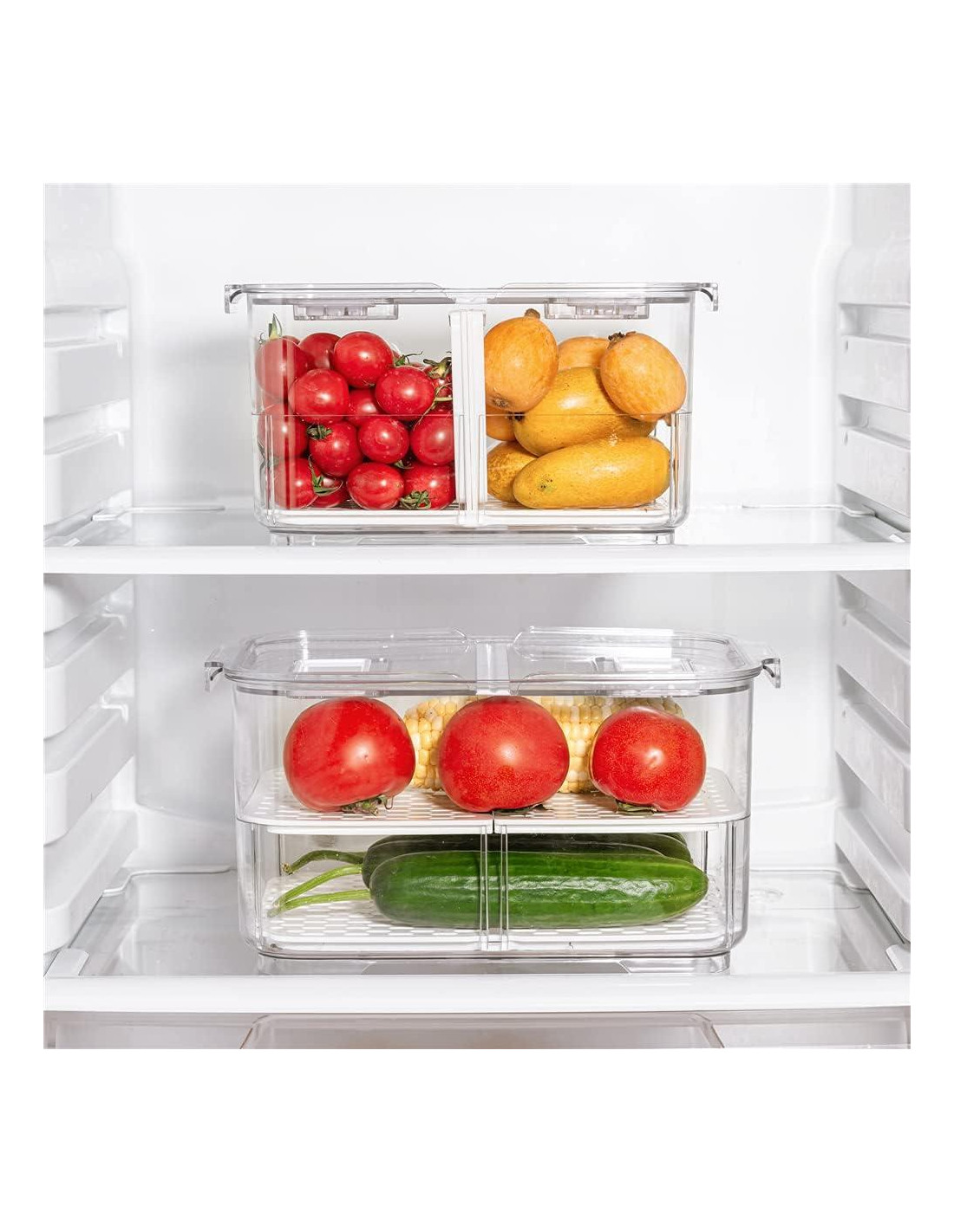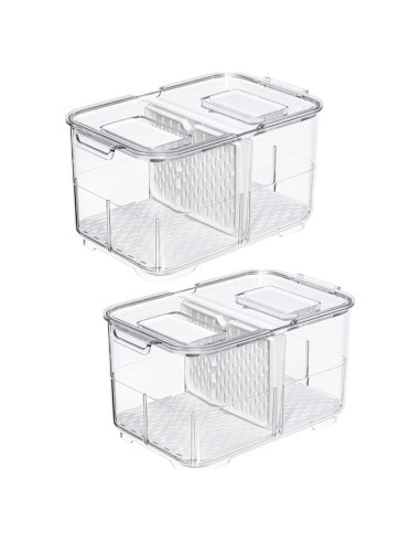 - CONTENEDORES TRANSPARENTES: Juego de 2. Capacidad: 2800 ml. Cada contenedor mide 9" (22.86 cm) L x 5.5" (13.97 cm) W x 4.7" (11.94 cm) H. Adecuado para refrigeradores de diferentes tamaños. Juego de 2 organiza el contenido mientras que la construcción transparente facilita ver lo que hay dentro sin abrir cada caja.