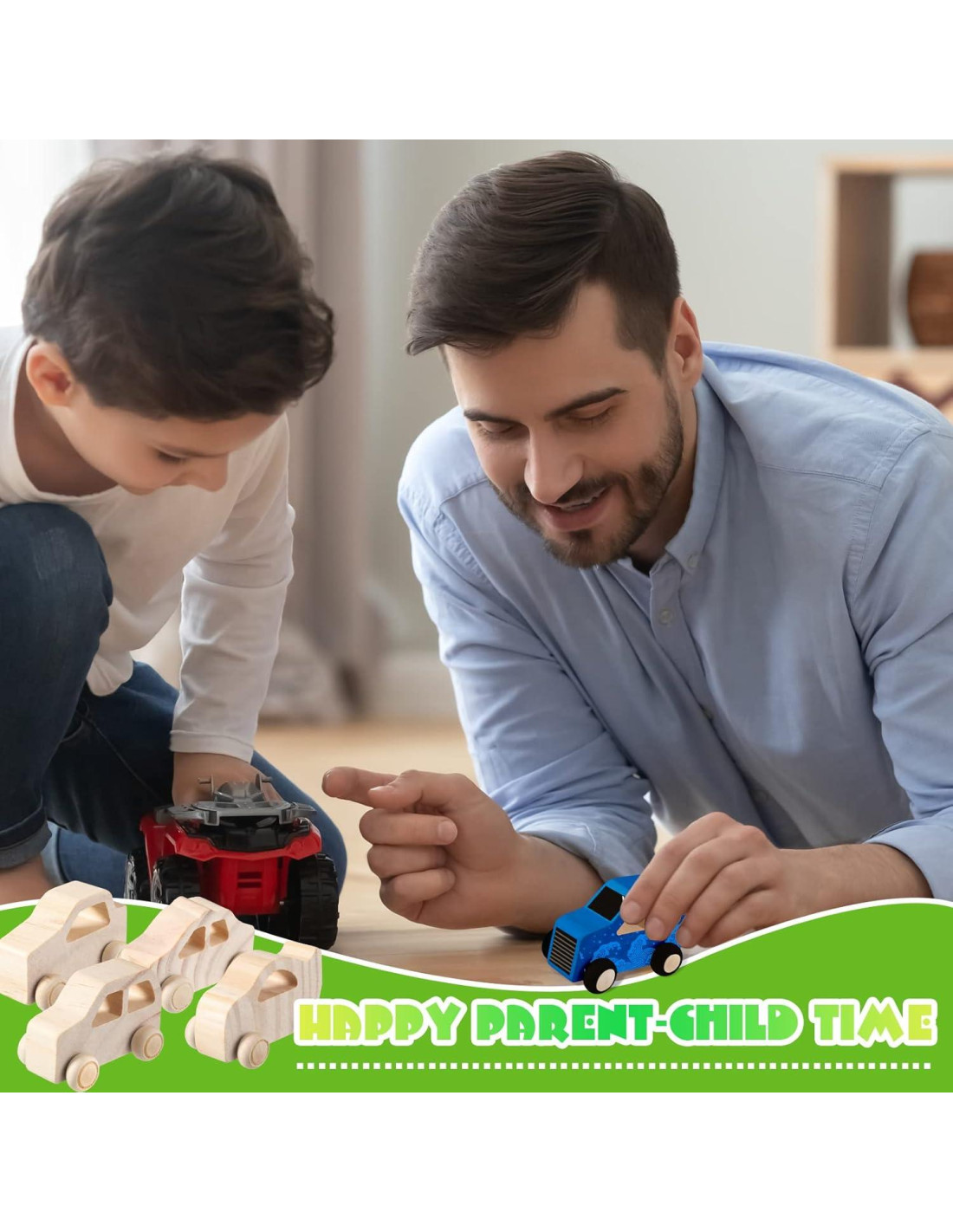- Fácil de Agarrar: los autos de madera pintables en un tamaño adecuado, y el autobús y el camión tienen un diseño de agujero, fácilmente agarrados por manos pequeñas, y estos autos de madera pueden rodar por el suelo de manera flexible, empujados fácilmente para un entretenimiento simple y divertido