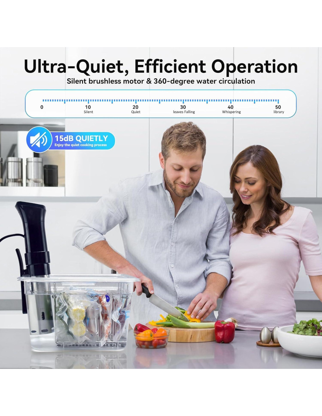 - Resultados perfectos cada vez: Este circulador de inmersión para sous vide ofrece un control de temperatura altamente preciso, la precisión del control de temperatura alcanza +/-1F (+/-0.1C), asegurando que tu comida se cocine de manera uniforme de borde a borde. Ya sea que estés preparando filetes tiernos o pescado delicado, nuestra máquina sous vide ofrece resultados consistentes y deliciosos sin riesgo de sobrecocción. Logra una cocina de calidad de restaurante en casa con nuestro cocedor sous vide de precisión.