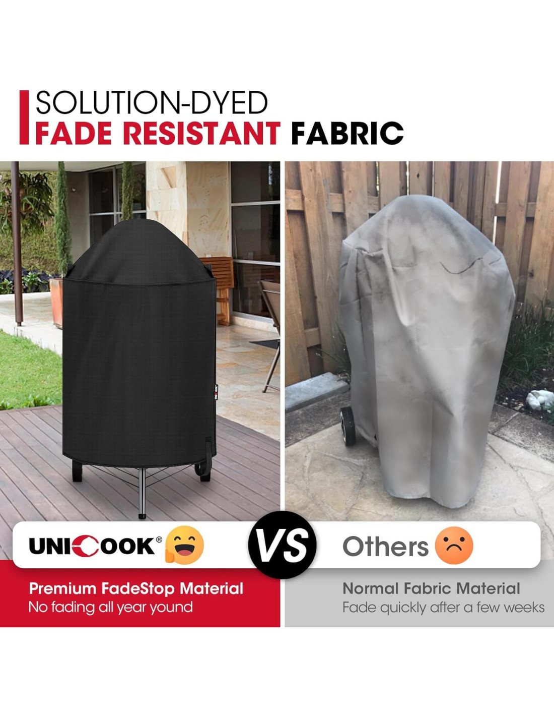 - Cubierta de Ahumador de Carbón Impermeable: La cubierta de ahumador Unicook para exteriores está hecha de vinilo texturizado impermeable con forro de Poliéster, mejora la protección impermeable, funciona como una barrera contra el sol, la lluvia, la nieve, la suciedad y los escombros, manteniendo tu ahumador seco y limpio durante todo el año.