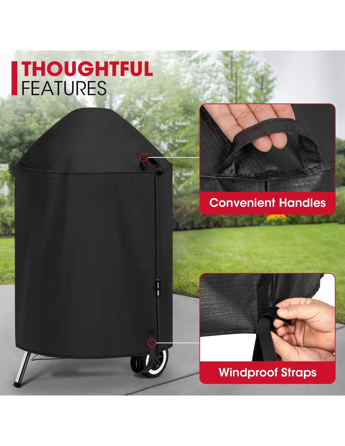 - Tamaño de la Cubierta para Parrilla: 28"Diá x 35"Al, compatible con Weber 22" Master-Touch, parrilla de carbón Jumbo Joe de 22 Pulgadas y la mayoría de los modelos de parrillas de carbón Weber de 22", comparado con Weber 7176. NO se ajusta a la Cocinera Smokey Mountain y a la parrilla Weber Performer. Por favor, mide tu parrilla de kettle antes de comprar.