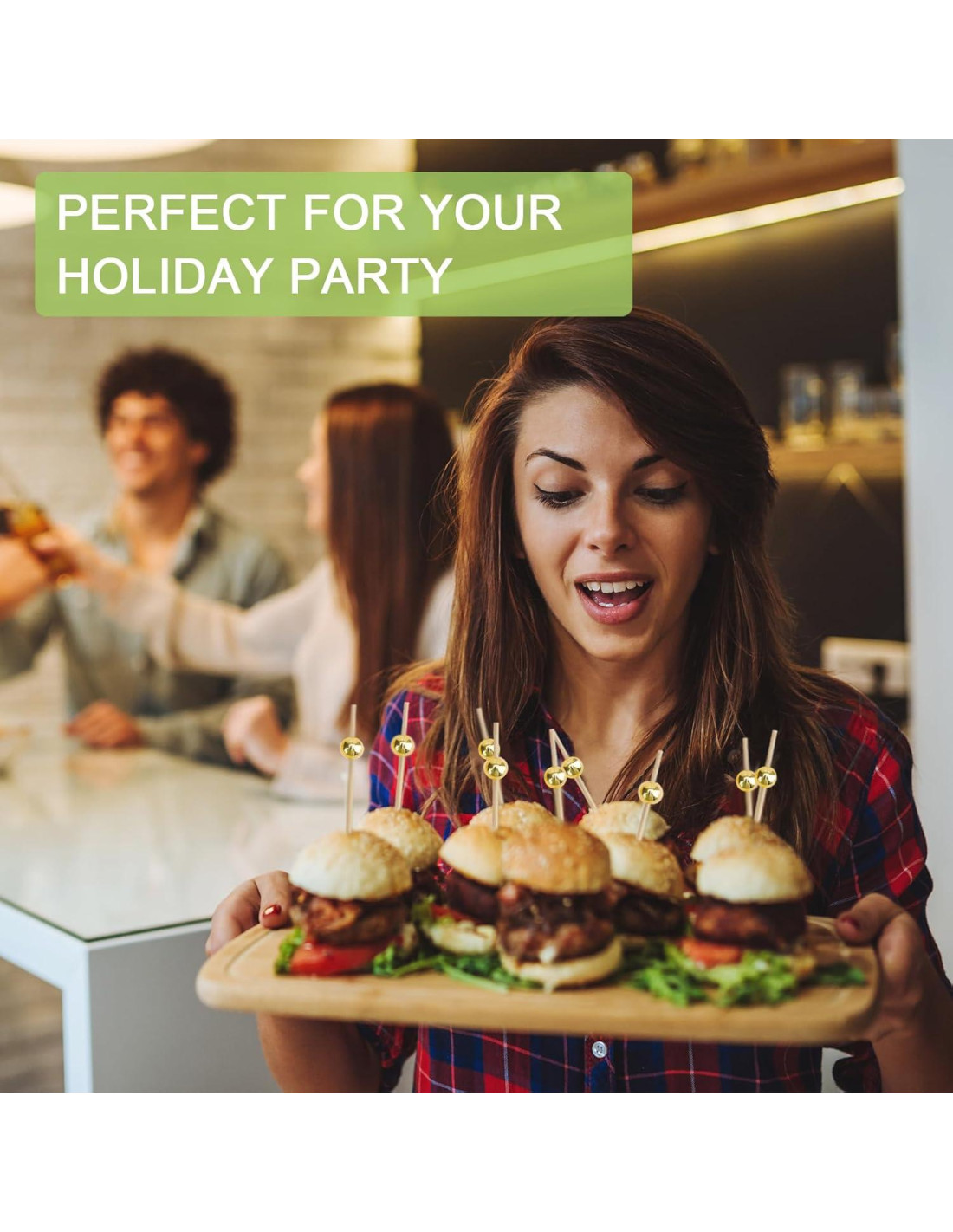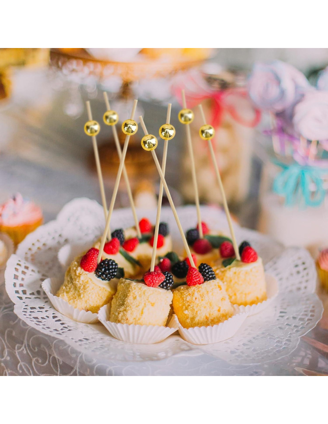- DISEÑO: Los pinchos para aperitivos con perlas brillantes son fáciles de decorar y usar, permitiendo que su comida se destaque de manera elegante y estilosa. Los palillos de perlas son una gran decoración para tablas de charcutería, aperitivos, brochetas de frutas, aceitunas, postres, sándwiches, hamburguesas, ensaladas, buffets, bebidas y verduras.