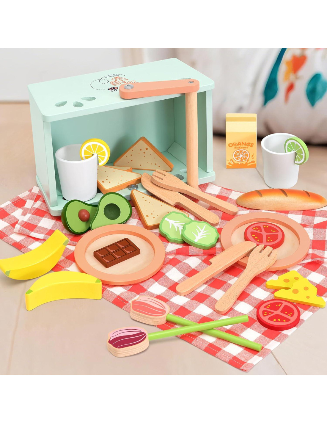 - Juego Versátil: El conjunto de 31 piezas inspira múltiples escenas de juego de roles: organiza un picnic, juega a la cocina o de compras, o celebra una fiesta de té. Los niños pueden cortar el aguacate, ensamblar sándwiches personalizados, perfecto para desarrollar habilidades motoras finas y coordinación mano-ojo. Con tenedores, cuchillos y platos incluidos, incluso aprenderán modales en la mesa y habilidades sociales mientras se divierten.