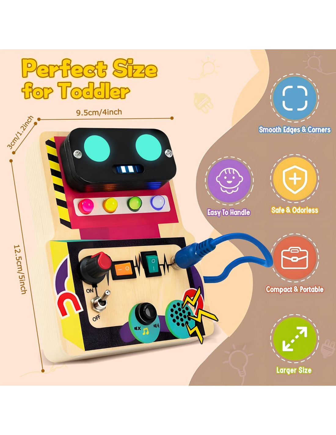- Tablero Sensorial para Niños Pequeños: La mesa ocupada con LED está cuidadosamente diseñada con luces y botones coloridos, 4 interruptores que coordinan con diferentes luces LED, y un botón de sonido. Cada botón está perfectamente dimensionado para manos pequeñas, y las diversas características sensoriales, incluyendo interruptores, luces y sonidos, seguramente captarán la atención de tu niño pequeño.
