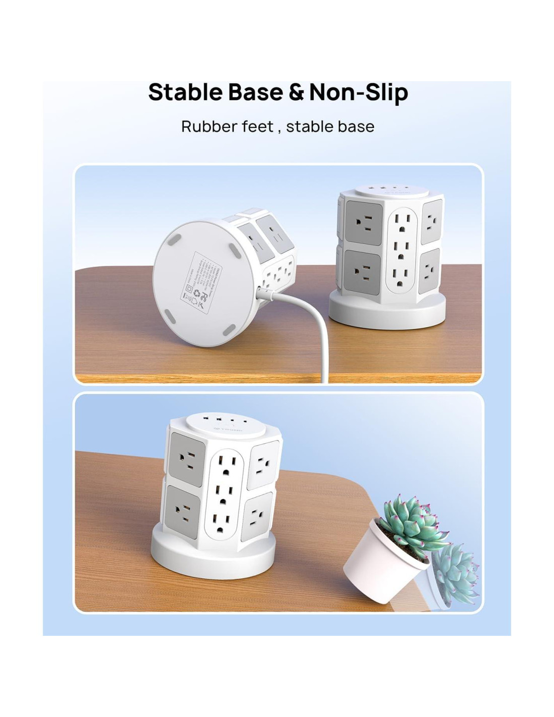 - [Base Estable y Espaciada] La torre de protector de sobretensión TROND está diseñada con 14 salidas AC ampliamente espaciadas (2.2 pulgadas (5.58 cm) de separación) distribuidas equitativamente entre seis lados, los transformadores voluminosos no bloquearán las salidas adyacentes y son más ahorradores de espacio que otras regletas. La parte inferior de esta torre de enchufes tiene 4 gomas antideslizantes, que pueden ser estables en tu escritorio o mesita de noche sin deslizarse.