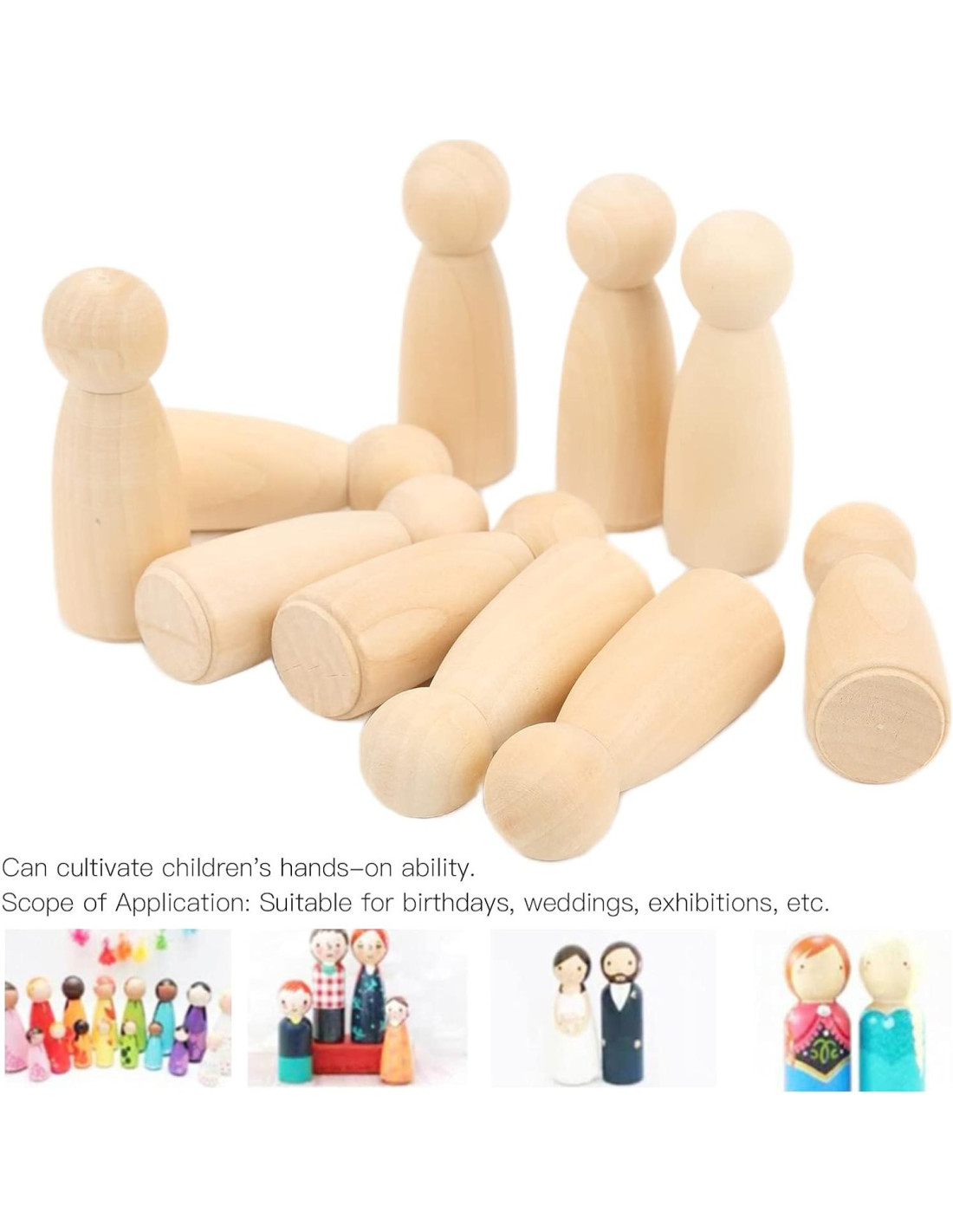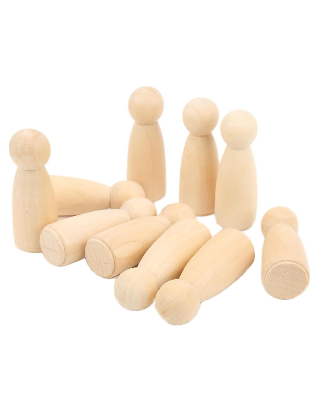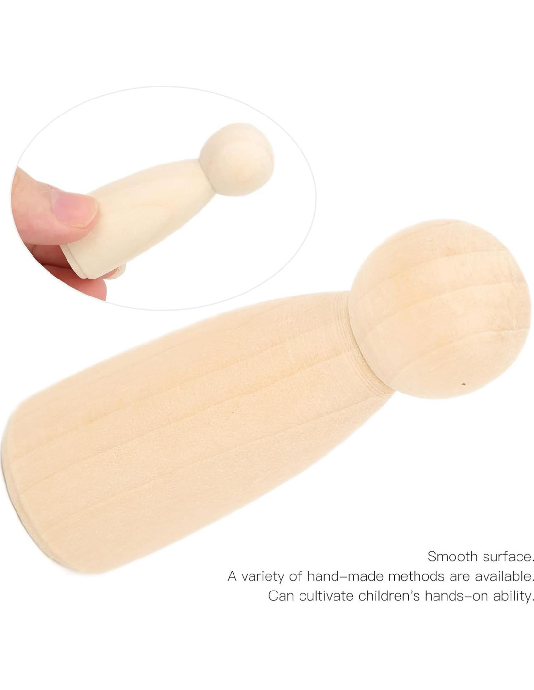 - Diseños Personalizables: Gracias a la suavidad de los muñecos de madera, son fáciles de pintar y decorar. Los niños pueden usar una variedad de materiales para adornar los muñecos con caras, atuendos y accesorios únicos. La falta de astillas asegura que los colores se adhieran bien y se puedan lograr diseños vibrantes sin esfuerzo.