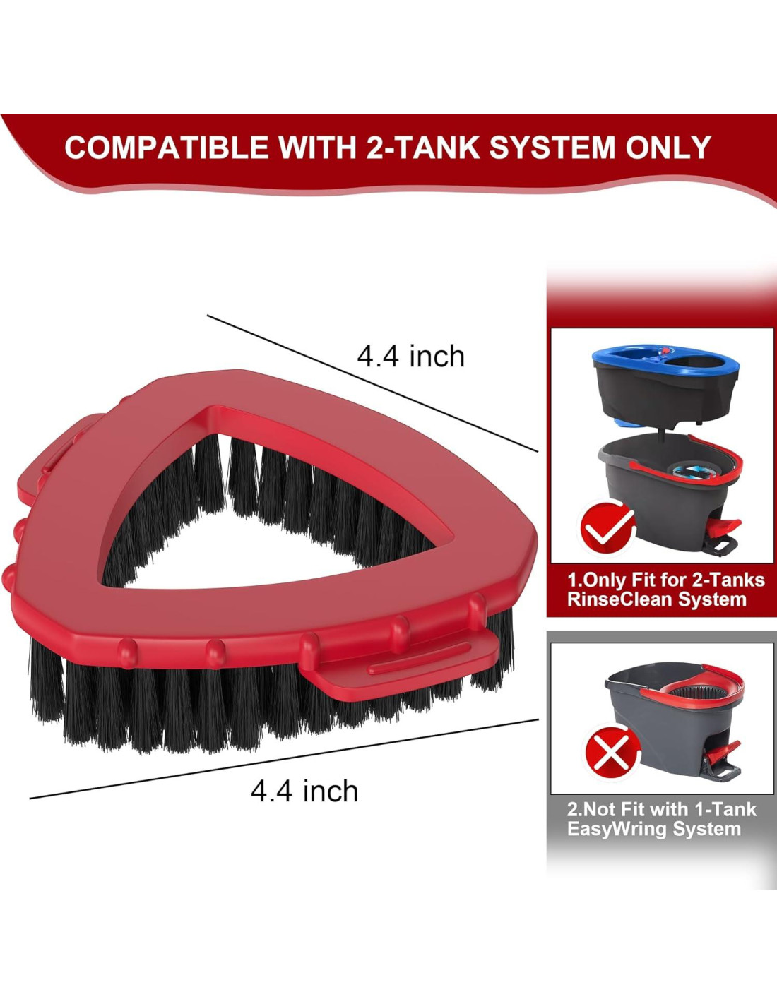 - [Modelo Compatible]: Cabezal de cepillo fregona Aifacay, tamaño de 4.4" x 4.4" (11.2 cm x 11.2 cm). Este accesorio de cepillo fregona para O Cedar está diseñado exclusivamente para su uso con el sistema de fregona y cubo Ocedar EasyWring RinseClean 2 Tanques, incluyendo la base de la fregona y el mango.