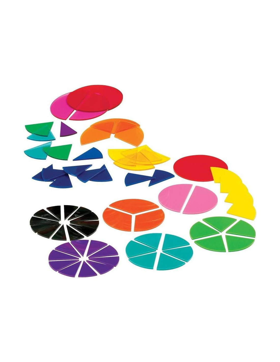 - HERRAMIENTAS DE APRENDIZAJE DE FRACCIONES: Cada uno de los círculos de fracción tiene un color que representa un todo, mitades, tercios, cuartos, quintos, sextos, octavos, décimos y duodécimos.