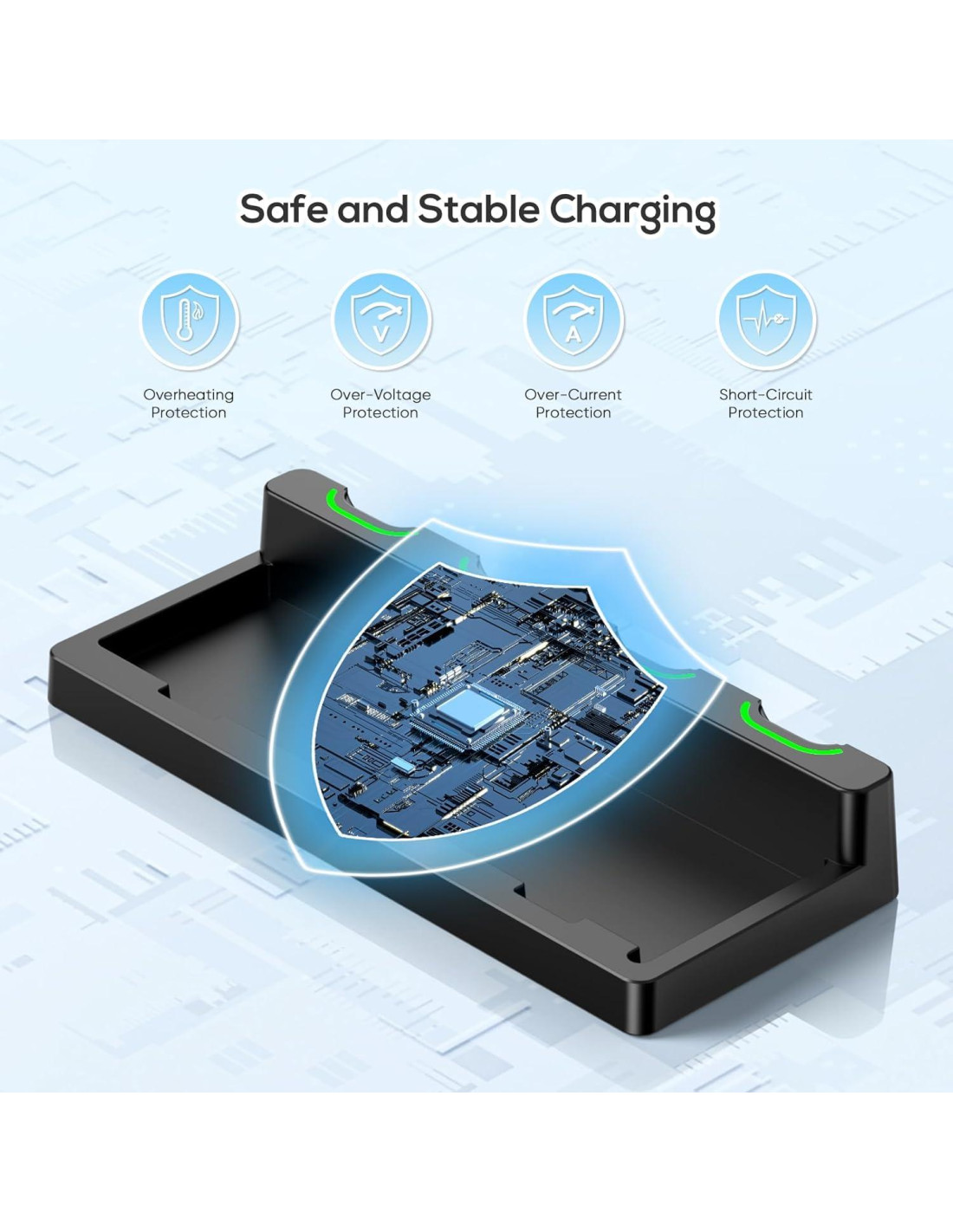 - Seguro y Confiable para Carga de Joy-con de Switch: Con chips de protección inteligente, con protección incorporada contra sobrecarga, sobrevoltaje, sobrecorriente y cortocircuito, puedes confiar en que tus dispositivos permanecerán seguros mientras conservan energía