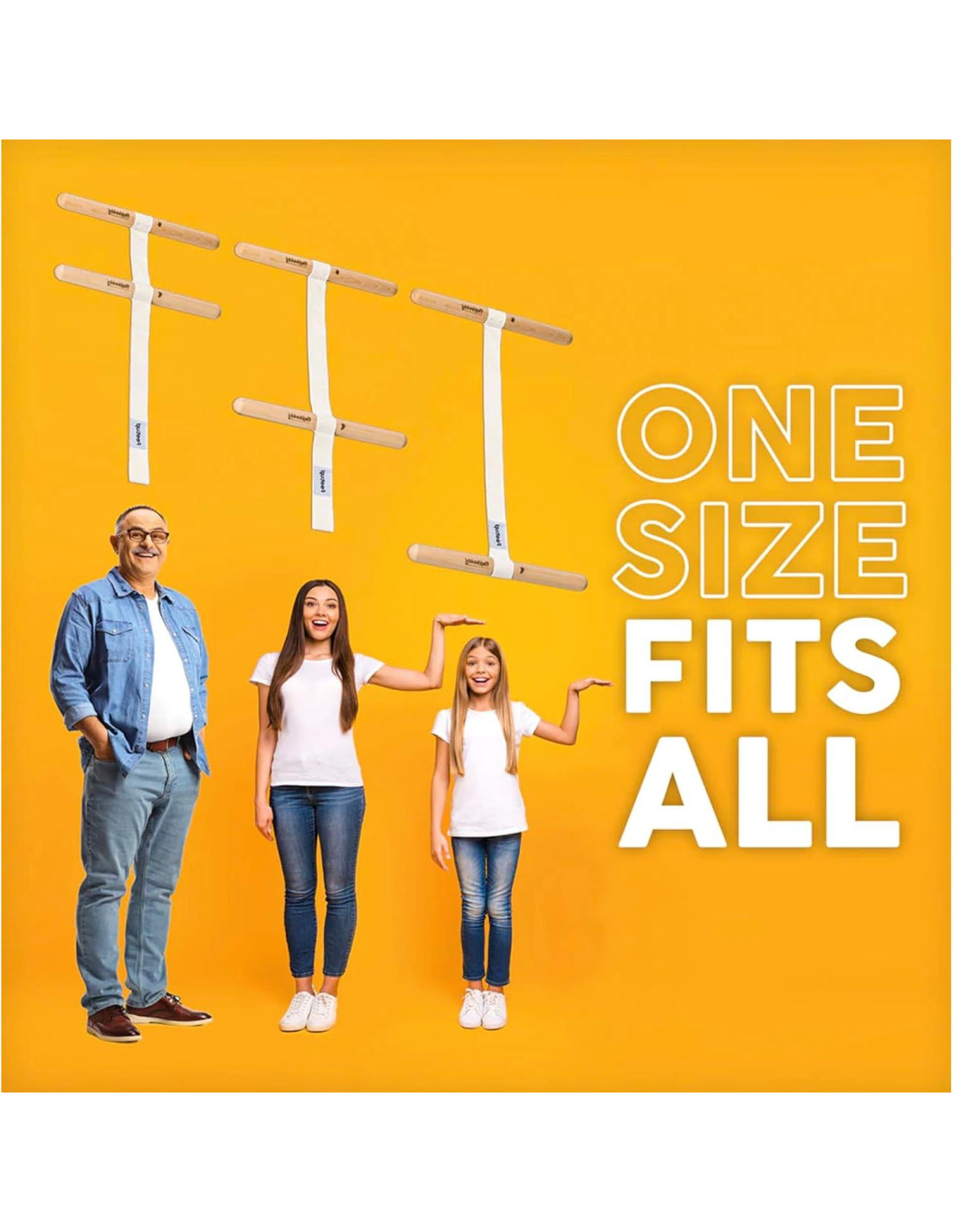 - UNA TALLA ÚNICA: La correa FlexBuddy es ajustable y se adapta a todos los tamaños de cuerpo. La parte de pie de madera es suelta y se puede insertar en los lazos de la correa. La parte de la mano, en el otro lado, está firmemente sujeta a la correa y se puede enrollar. ¡De esta manera, puedes encontrar tu estiramiento perfecto con precisión de milímetros, todos los días!