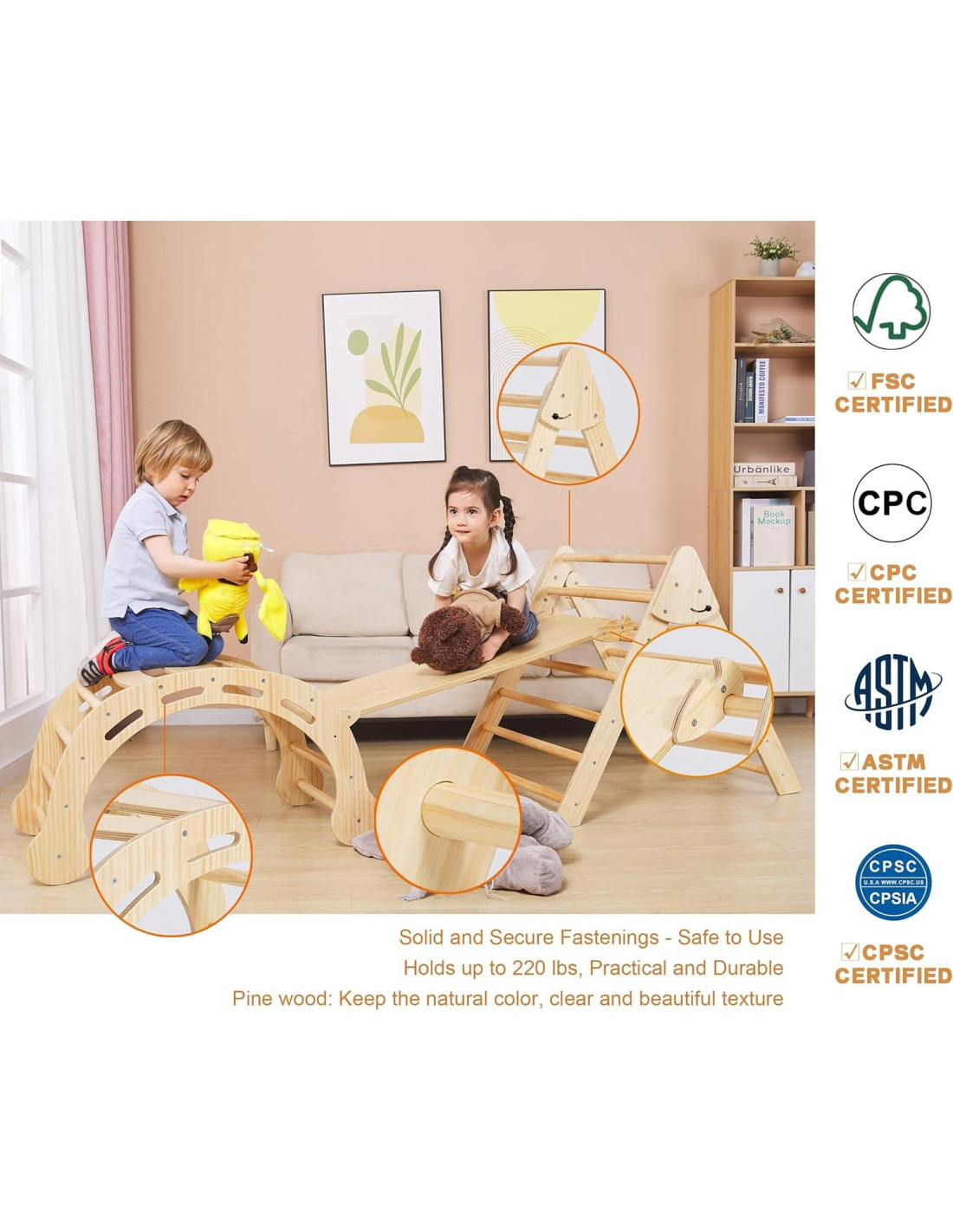 - Material mejorado - Engrosado y reforzado: los juguetes de escalada para niños de 1 a 6 años están hechos de madera natural superior, no madera desnuda áspera, ¡valor por el dinero! más suave, más seguro, más fuerte y más duradero! Después de miles de pulidos y lijados, su superficie es suave y sin astillas. Tener este conjunto de equipos se puede usar durante muchos años