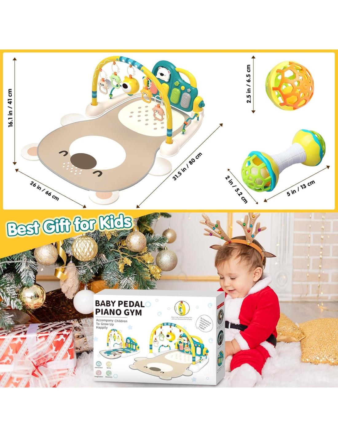 - Diseñado Especialmente para Bebés Este gimnasio de juego es perfecto para el desarrollo cerebral de bebés de 0-12 meses. El piano activado por patadas está diseñado especialmente para infantes, con música alegre de guardería que los anima a patear repetidamente. Nuestro gimnasio de juego para bebés fomenta el desarrollo de los músculos en brazos, piernas, abdomen, espalda y cuello mientras estimula la coordinación mano-ojo y tanto las habilidades motoras finas como gruesas.