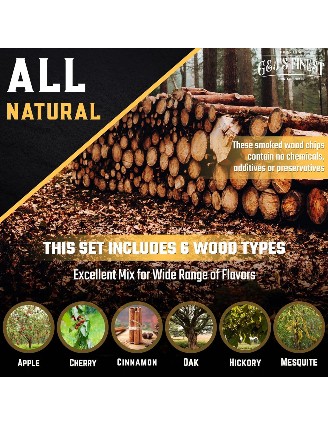 - MÁXIMA EXPOSICIÓN AL SABOR Incluye seis latas seleccionadas: manzana, cereza, roble, nogal, canela y mezquite. Cada lata hermética contiene madera dura finamente triturada y secada en horno, diseñada para una ignición rápida y humo caliente lleno de sabor. Estas son no tóxicas, libres de químicos y optimizadas para sesiones de humo de ciclo corto para evitar el exceso de ahumado.