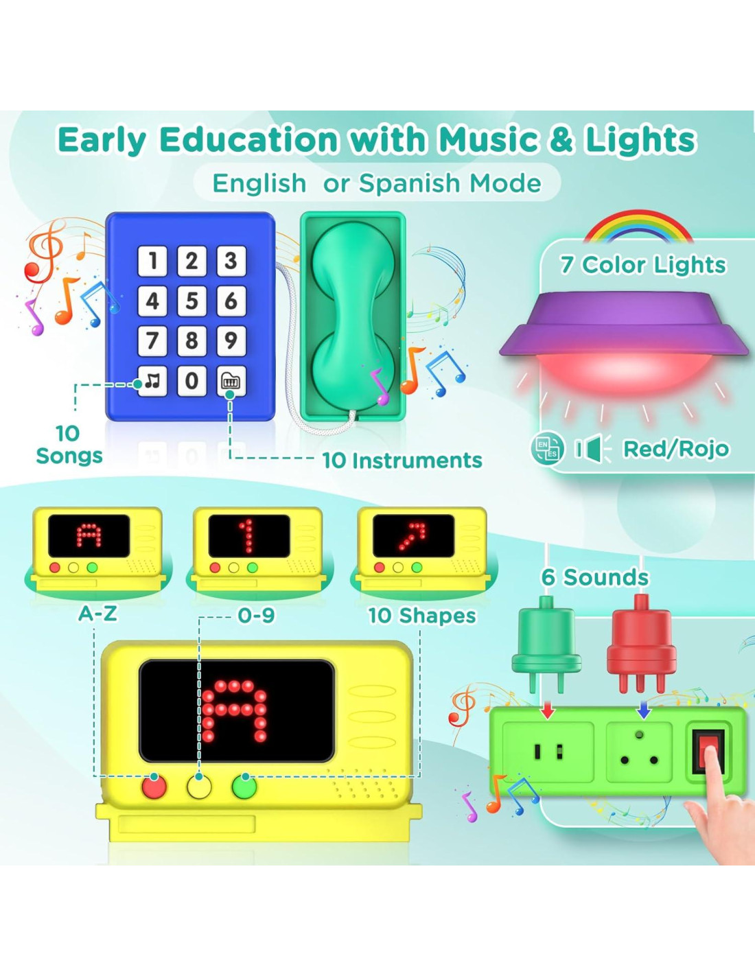 - Tablero ocupado Montessori con música: Equipado con más de 20 actividades, incluyendo 10 sonidos de instrumentos, 10 canciones infantiles, 7 luces de colores, 26 letras, 10 números y 9 formas. Ayuda a los niños a aprender a manipular objetos cotidianos mientras desarrollan sus habilidades motoras finas.