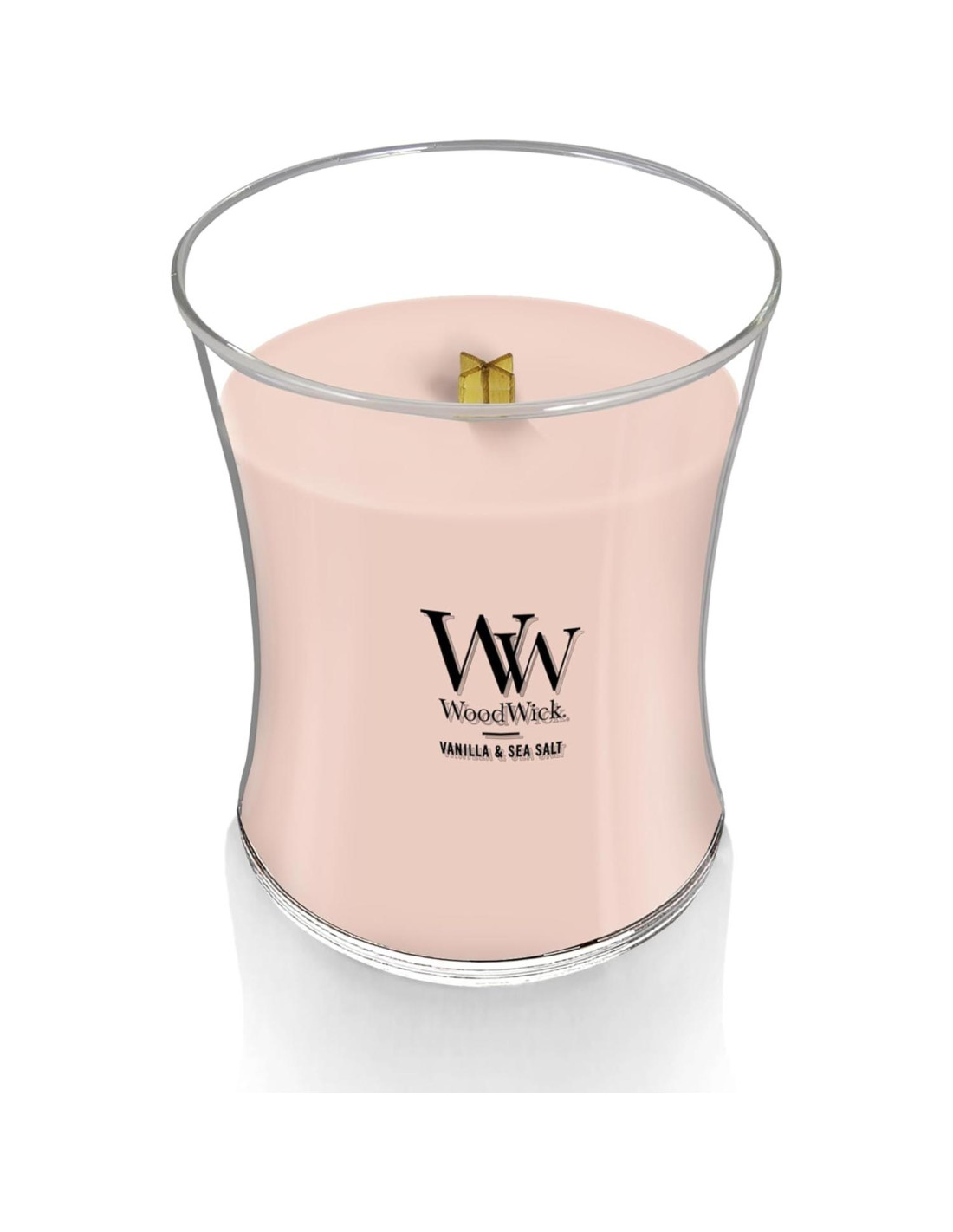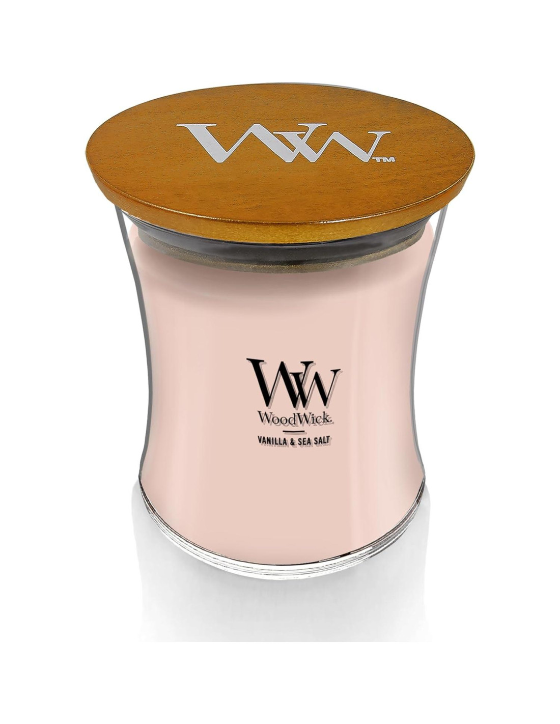 Descripción del Producto Experimenta el aroma lujoso y encantador de la Vela de Hora de Arena Mediana WoodWick. Aromatizada con una suave mezcla de flores de vainilla, sal marina y jazmín, esta vela está elaborada con una mezcla premium de cera de soja y parafina. Cada fragancia está mezclada de manera única para proporcionar un aroma sofisticado y complejo. La Innovación Pluswick crea un hermoso sonido crepitante para una experiencia multisensorial. El icónico diseño de hora de arena de esta vela con una tapa de madera la convierte en una adición elegante a la decoración de tu hogar o un regalo apreciado. El conjunto contiene: 1 x Vela de Hora de Arena Mediana WoodWick con Innovación Pluswick (Vainilla y Sal Marina)